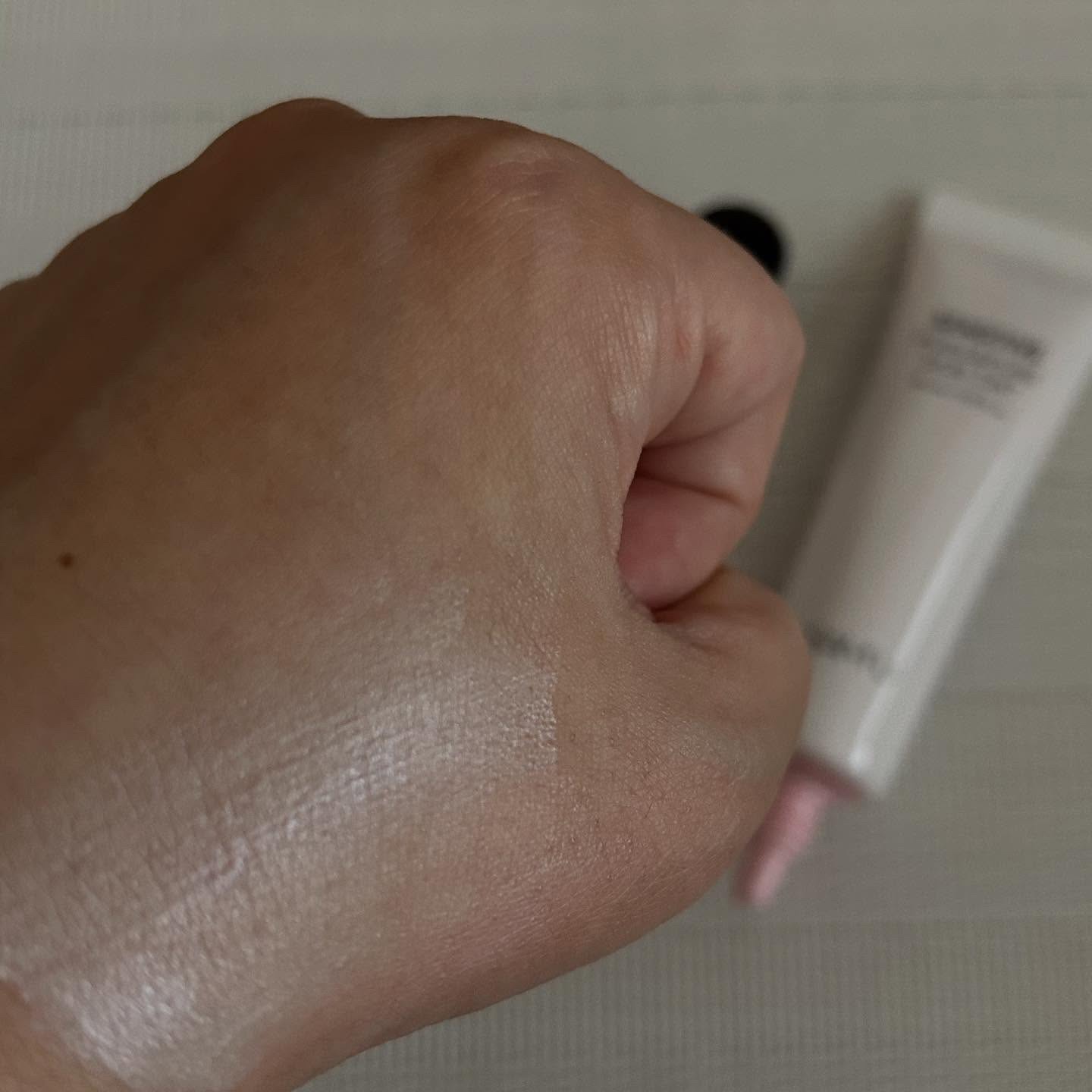 1本4役の万能トーンアップ下地です ①しっかりとUV対策しながら ②肌のハリツヤへもアプローチ✨ ③保湿もしてくれて ④トーンアップ テクスチャーはみずみずしいクリームで 白っぽい薄いラベンダー色🪻 柔らかいので伸びやすいです◎ ラベンダーカラーでくすみを飛ばして 透明感が🆙 ツヤもあります◎