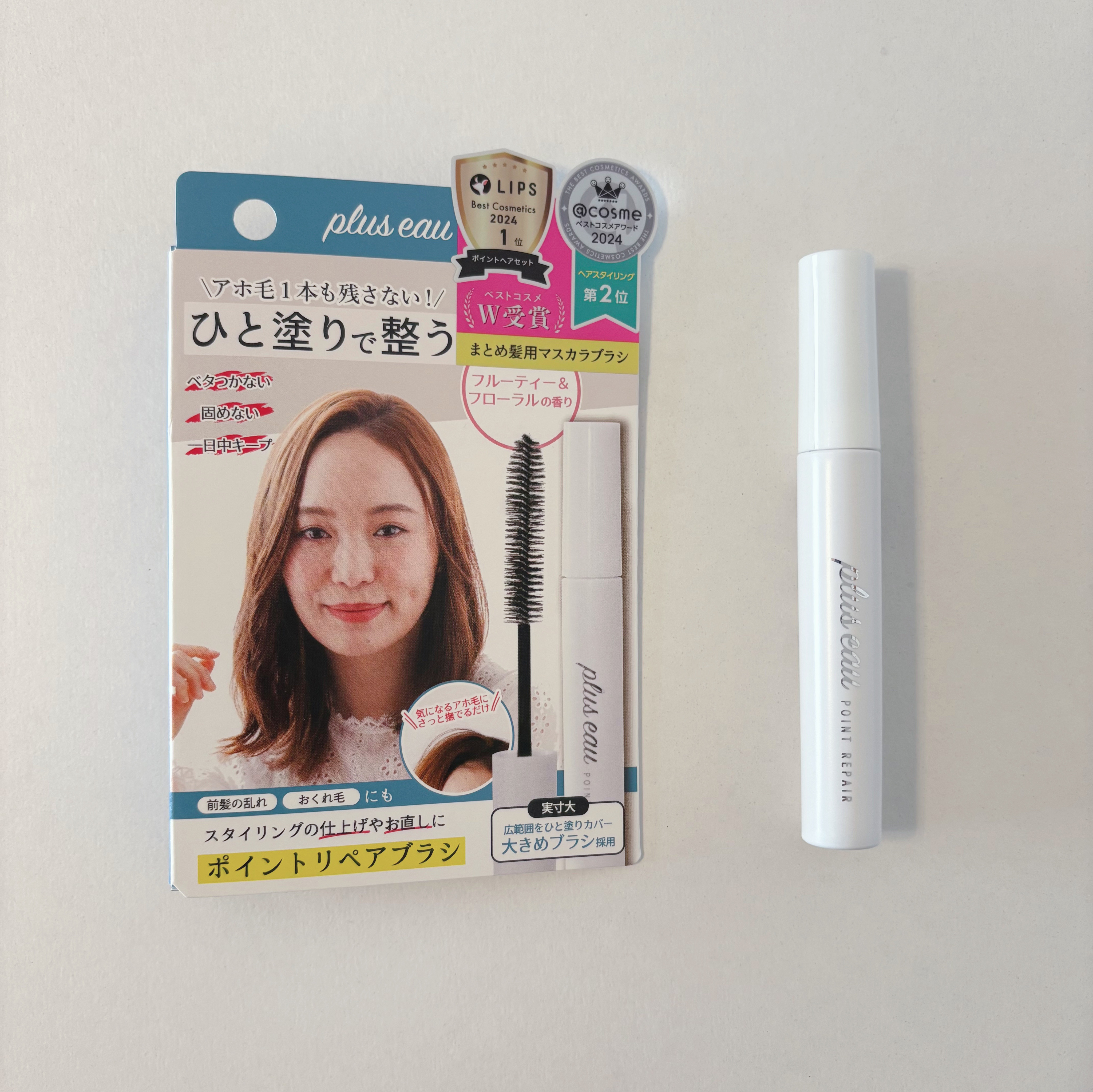 - アホ毛や乱れ髪をひと塗りでサっと落ち着かせて整える、ジェル状のまとめ髪スタイリング。 気になる部分を少し浮かせ気味にサッと撫でるだけ、ブラシについているジェル状の保湿ケア成分が乱れた髪を周りの長い髪と馴染ませて、自然と分け目やまとめ髪を整えてサロン級の仕上がりに。 アホ毛やおくれ毛、パサつきもスッと抑えます。 マスカラ形状なので手を汚さずに使えて、ポーチにも入るサイズなので持ち運びも便利。 一般的なアイメイク用マスカラよりも大型なブラシを採用し、ひと塗りで広い面積をカバーできて髪にひっかかりにくく狙った乱れ髪を整えます。 ワックス状のもので仕上げた際になりがちな塗った箇所だけがベタっと重い仕上りになることもなく、自然な形の整う髪へ。