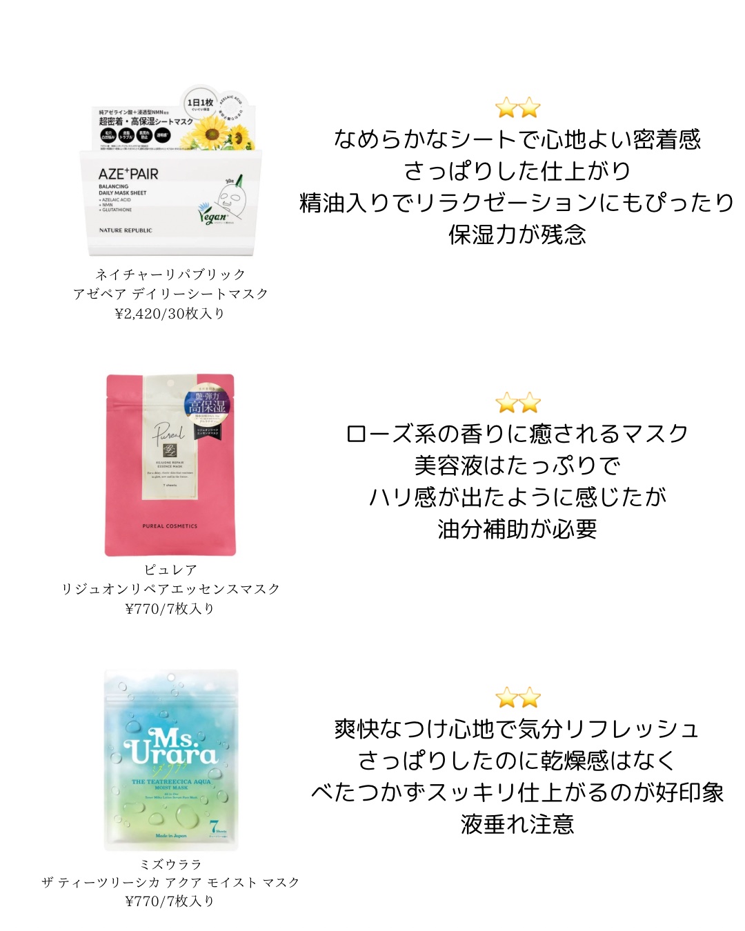 | スキンケアランキング第157位 | 美容液ひったひたのフェイスマスク✨ しっかりした厚みのシート👏 美容液たっぷりで毎回気持ち良い | 詳細を見る | |