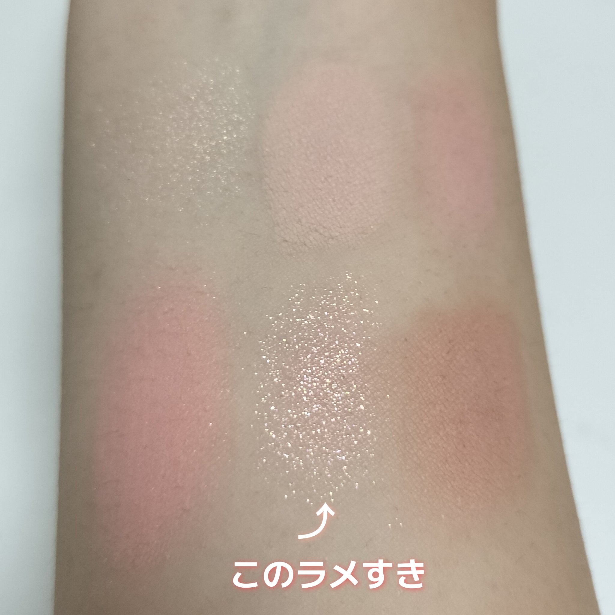 - <04 ニューデイ> タルク、マイカ、ジメチコン、合成フルオロフロゴパイト、酸化鉄、酸化チタン、ホウケイ酸(Ca/チタン)、ナイロン-12、オクテニルコハク酸デンプンAl、シリカ、メタクリル酸メチルクロスポリマー、窒化ホウ素、ステアロイルオキシステアリン酸オクチルドデシル、フェニルトリメチコン、ミリスチン酸Mg、ジエチルヘキサン酸ネオペンチルグリコール、メチルプロパンジオール、ラウリン酸ヘキシル、ヘキサ(ヒドロキシステアリン酸/ステアリン酸/ロジン酸)ジペンタエリスリチル、グンジョウ、(ジメチコン/ビニルジメチコン)クロスポリマー、ホウケイ酸(Ca/Al)、プロパンジオール、ステアリン酸Mg、(セバシン酸/イソパルミチン酸)ジグリセリル、トリエトキシカプリリルシラン、トリ(カプリル酸/カプリン酸)グリセリル、トリエチルヘキサノイン、セスキイソステアリン酸ソルビタン、マカデミア種子油、リンゴ酸ジイソステアリル、マンガンバイオレット、フェノキシエタノール、ステアリン酸ジメチコノール、合成ワックス、ラウロイルリシン、水酸化Al、メチコン、酸化スズ、サラソウジュ種子脂、水添レシチン、カルミン、カオリン、黄4、赤226、マルトデキストリン、トコフェロール <07 ラヴァブル> タルク、ジメチコン、マイカ、合成フルオロフロゴパイト、酸化チタン、シリカ、ホウケイ酸(Ca/チタン)、メタクリル酸メチルクロスポリマー、酸化鉄、マンガンバイオレット、ステアロイルオキシステアリン酸オクチルドデシル、オクテニルコハク酸デンプンAl、ホウケイ酸(Ca/Na)、ミリスチン酸Mg、メチルプロパンジオール、ジエチルヘキサン酸ネオペンチルグリコール、トリ(カプリル酸/カプリン酸)グリセリル、ホウケイ酸(Ca/Al)、フェニルトリメチコン、ラウリン酸ヘキシル、(ジメチコン/ビニルジメチコン)クロスポリマー、硫酸Ba、ヘキサ(ヒドロキシステアリン酸/ステアリン酸/ロジン酸)ジペンタエリスリチル、プロパンジオール、ナイロン-12、(セバシン酸/イソパルミチン酸)ジグリセリル、グンジョウ、マカデミア種子油、ステアリン酸Mg、セスキイソステアリン酸ソルビタン、トリエトキシカプリリルシラン、リンゴ酸ジイソステアリル、カルミン、合成ワックス、水添レシチン、カオリン、ラウロイルリシン、水酸化Al、酸化スズ、赤226、メチコン、マルトデキストリン、トコフェロール <08 ピンクブーム> タルク、マイカ、ジメチコン、合成フルオロフロゴパイト、酸化チタン、酸化鉄、シリカ、メタクリル酸メチルクロスポリマー、ナイロン-12、窒化ホウ素、マンガンバイオレット、ホウケイ酸(Ca/Al)、トリ(カプリル酸/カプリン酸)グリセリル、ミリスチン酸Mg、フェニルトリメチコン、ステアロイルオキシステアリン酸オクチルドデシル、メチルプロパンジオール、ジエチルヘキサン酸ネオペンチルグリコール、ホウケイ酸(Ca/チタン)、グンジョウ、ラウリン酸ヘキシル、ホウケイ酸(Ca/Na)、ヘキサ(ヒドロキシステアリン酸/ステアリン酸/ロジン酸)ジペンタエリスリチル、(ジメチコン/ビニルジメチコン)クロスポリマー、プロパンジオール、(セバシン酸/イソパルミチン酸)ジグリセリル、ステアリン酸Mg、セスキイソステアリン酸ソルビタン、リンゴ酸ジイソステアリル、カルミン、マカデミア種子油、オクチルドデカノール、トリエトキシカプリリルシラン、水添レシチン、合成ワックス、ステアリン酸ジメチコノール、カオリン、赤226、酸化スズ、ラウロイルリシン、水酸化Al、メチコン、マルトデキストリン、黄4、トコフェロール <09 ドリームキャッチャー> タルク、マイカ、ジメチコン、合成フルオロフロゴパイト、酸化チタン、ホウケイ酸(Ca/Al)、オクテニルコハク酸デンプンAl、酸化鉄、メタクリル酸メチルクロスポリマー、シリカ、窒化ホウ素、ステアロイルオキシステアリン酸オクチルドデシル、フェニルトリメチコン、ホウケイ酸(Ca/チタン)、マンガンバイオレット、ミリスチン酸Mg、グンジョウ、メチルプロパンジオール、ジエチルヘキサン酸ネオペンチルグリコール、ラウリン酸ヘキシル、オクチルドデカノール、ヘキサ(ヒドロキシステアリン酸/ステアリン酸/ロジン酸)ジペンタエリスリチル、(ジメチコン/ビニルジメチコン)クロスポリマー、ナイロン-12、プロパンジオール、(セバシン酸/イソパルミチン酸)ジグリセリル、リンゴ酸ジイソステアリル、セスキイソステアリン酸ソルビタン、銀、ステアリン酸Mg、トリエトキシカプリリルシラン、炭酸Ca、ステアリン酸ジメチコノール、マカデミア種子油、合成ワックス、トリ(カプリル酸/カプリン酸)グリセリル、メチコン、カルミン、カオリン、酸化スズ、水添レシチン、水酸化Al、赤226、ラウロイルリシン、マルトデキストリン、トコフェロール <10 ピクニック> タルク、ジメチコン、マイカ、合成フルオロフロゴパイト、酸化チタン、シリカ、酸化鉄、メタクリル酸メチルクロスポリマー、トリ(カプリル酸/カプリン酸)グリセリル、オ