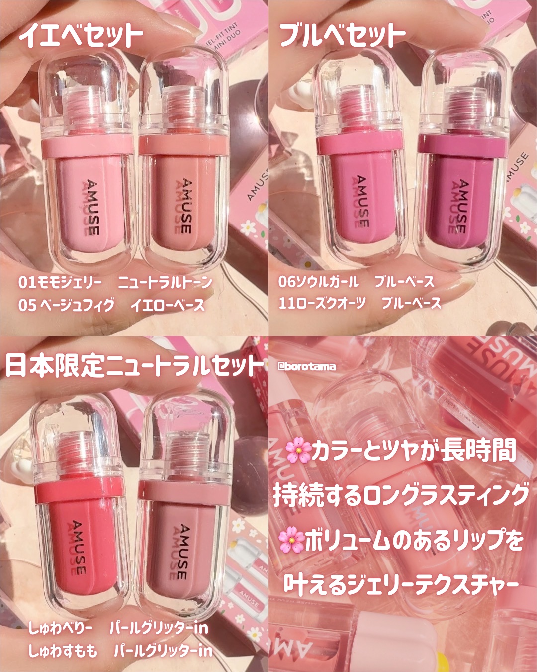 AMUSE♡デューティントミニデュオ(ニュートラルセット)♡ジェルフィットティントミニデュオ(ニュートラルセット)AMUSEからミニサイズリップのデュオセットが登場〜♡デューティントとジェルフィットティントそれぞれミニサイズのイエベセット・ブ...