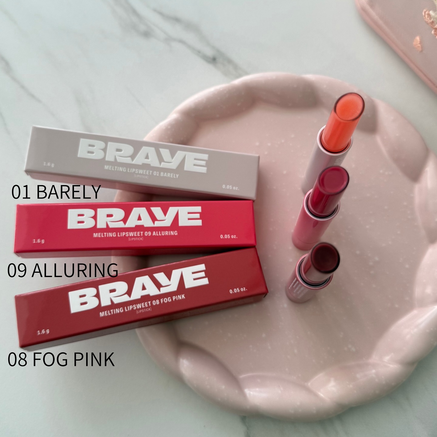 【ブルベ色おすすめ】新作ぷるっぷるツヤリップ💄´-#BRAYE#メルティングリップスウィート01ベアリ/02キッシュ/03メロ/08フォグピンク韓国で発売後に完売が連続して話題になってた、BRAYEのスティックタイ...