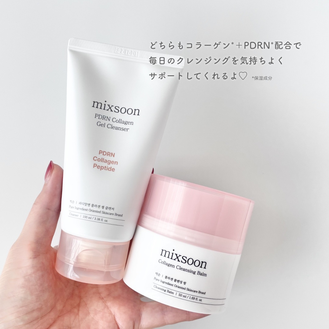 #PRmixsoon🩷コラーゲンクレンジングバーム容器を回して削って使うタイプのクレンジングバーム✨スパチュラが必要ないのがすごく楽です🥰メイク落ちもよかったです💗🩷PDRNコラーゲンジェルクレンザージェルタイプだけど泡立ちもいいです🫧ふわふ...