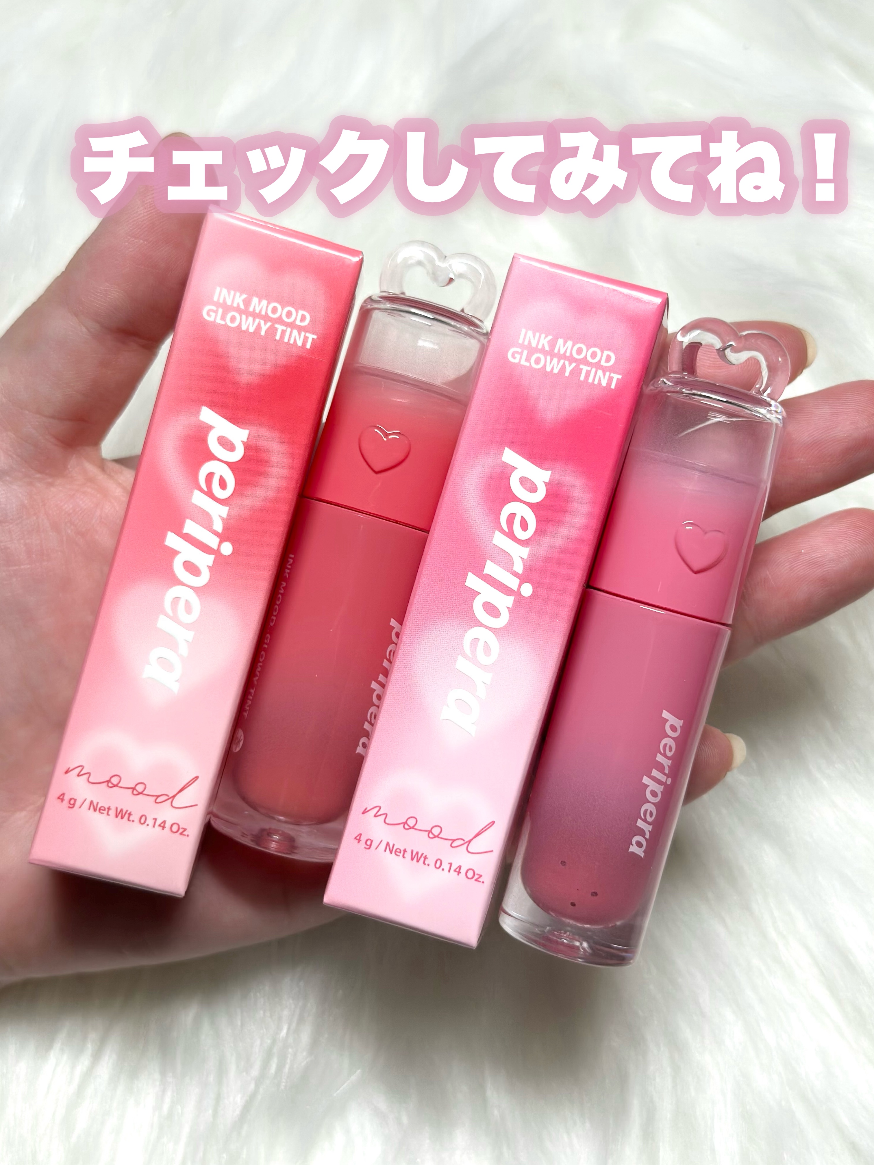 ...periperaInkMoodGlowyTint.⋆𝜗𝜚ハート耳付きで、チャームをつけたりカバンにつけて持ち運べる可愛らしいリップ見た目だけではなく中身もしっかり可愛い🤦🏻♀️💗みずみずしいテクスチャーでじゅわっと滲み出るような透明感...