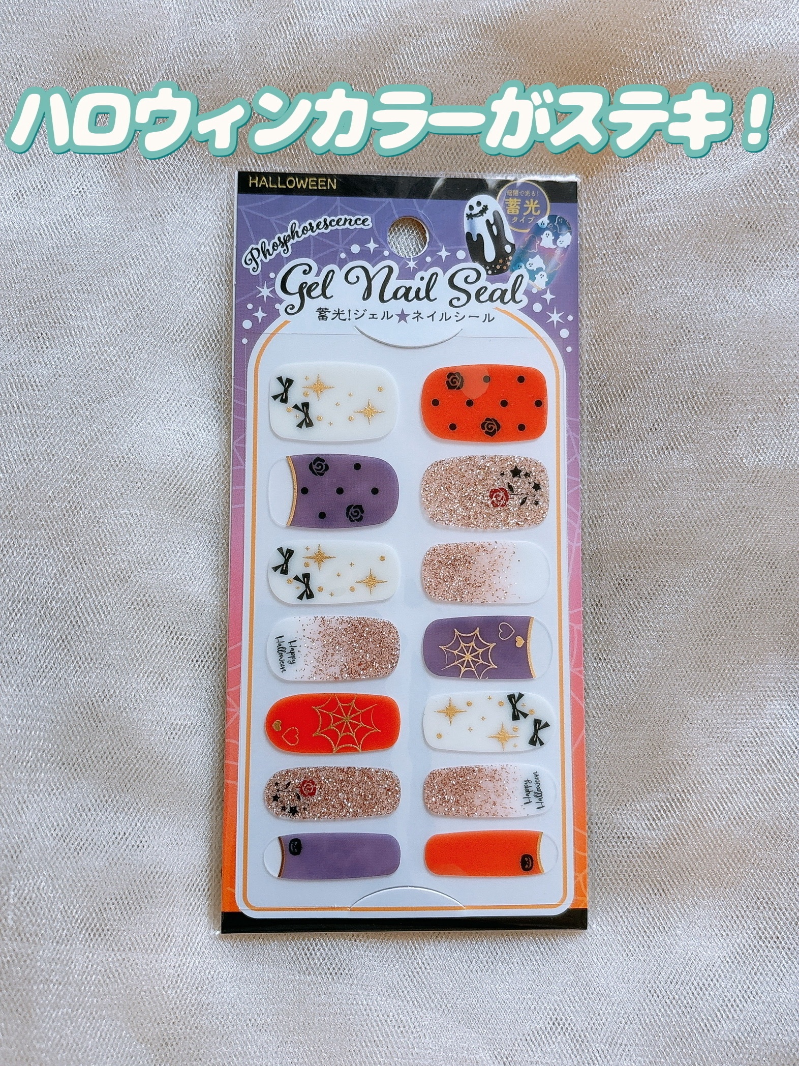 Seriaでハロウィンネイル!LightPURPLECarrotORANGEそしてセリアに売ってたネイルシールを使いました!🙆♀️2色をランダムに塗ってネイルシールを好きなように貼るだけやからめちゃくちゃ簡単です⋆⸜(*॑꒳॑*)⸝なかなか...