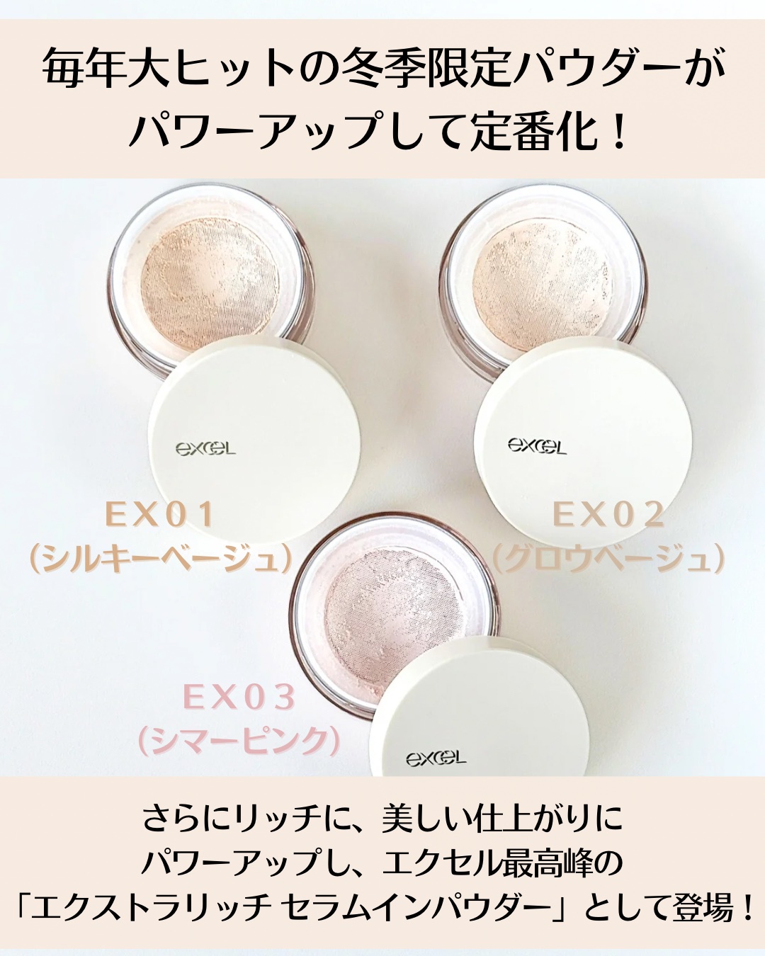 あの冬限定パウダーがついに定番化🔥2015年から毎年冬限定で発売してSNSでも大人気なスキンケアパウダー“エクストラリッチパウダー“が更にリッチに、美しい仕上がりにパワーアップしエクセル最高峰の『エクストラリッチセラムインパウダー』として登場...