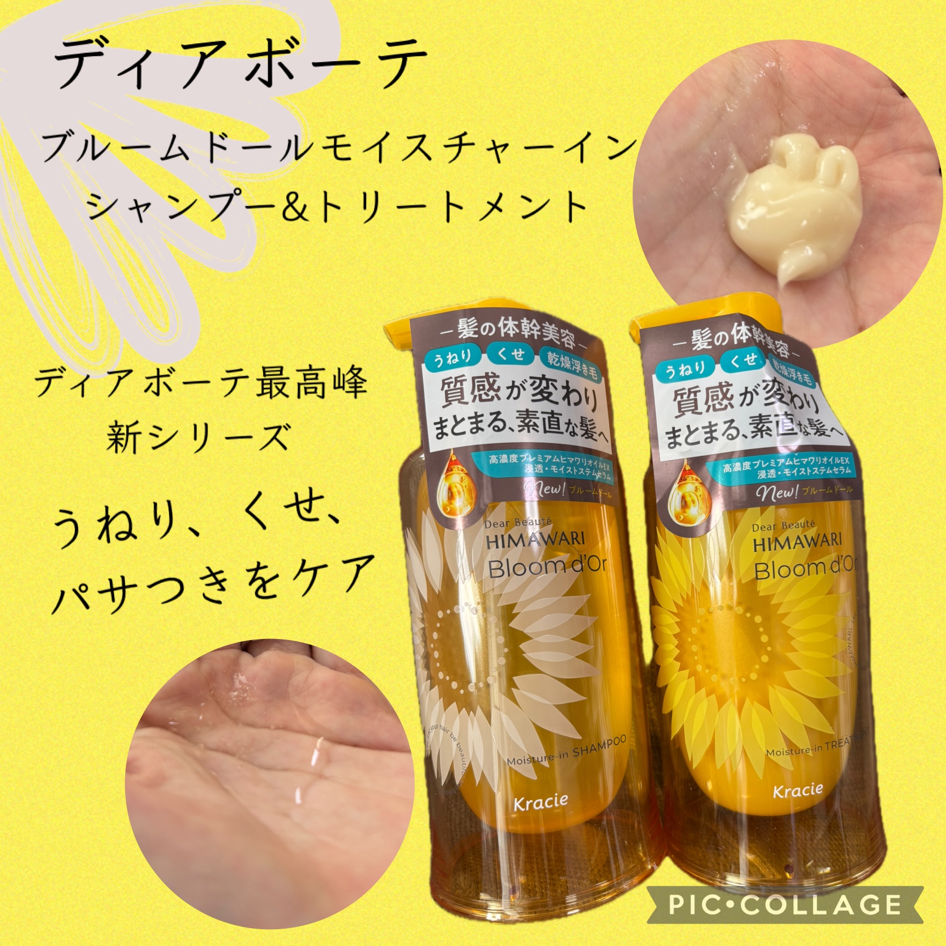 ディアボーテブルームドールモイスチャーインシャンプー/トリートメントを使ってみました。元気の出る様な向日葵の黄色パケ♡乾燥による髪のうねり、くせ、パサつきをケアする『ディアボーテ』最高峰の新シリーズ!「髪の体幹美容」*1(ゆがみケアシステム+...