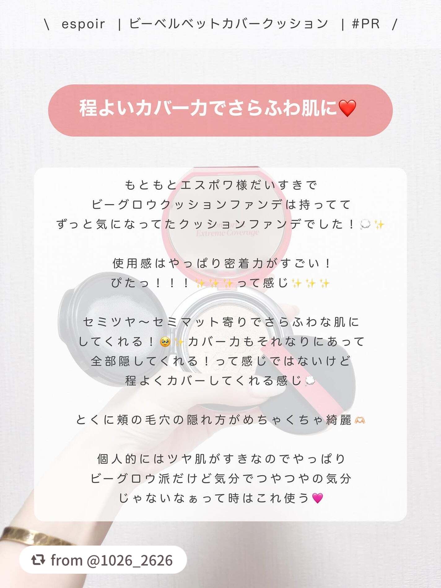 クッション選びのポイントはなんですか🤔?今回は、クッションマッチプのespoir💕クッションファンデを徹底比較します!୨୧ビーベルベットカバークッション真っ赤が目を引くこのクッション👀❤️🔥ベルベットマットなやわからいのにマットの不思議なテ...