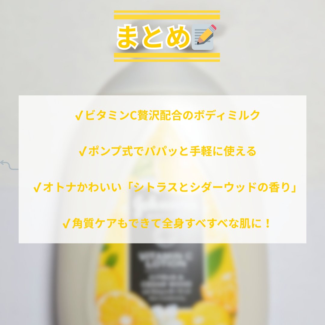 - 「美容の大本命」ビタミンC*1を贅沢配合したボディミルクが新登場! これ1本で全身”水光肌*2”が目指せるヒミツとは? ▼Point 1 : 高濃度*3持続型ビタミンC*1 信頼性の高いビタミンCの一種で、ビタミンCの体内持続時間が長くなり効果を発揮しやすくなります。ビタミンC*1の美容マルチパワーを全身で体感! ▼Point 2 : 保湿+なめらか角質ケア 肌を柔らかくするピーチエキス*4を配合していることで、なめらかに角質ケアして肌の基礎を整えてくれます。角質ケア⇒浸透*5⇒保湿の3ステップが手軽に叶う、全身美容パック! *1 アスコルビルグルコシド(整肌成分) *2 水気を感じさせるようなツヤ・輝きのある肌 *3 「エクストラケア アロマミルク比」 *4 モモ果実エキス(整肌成分) *5 角質層まで