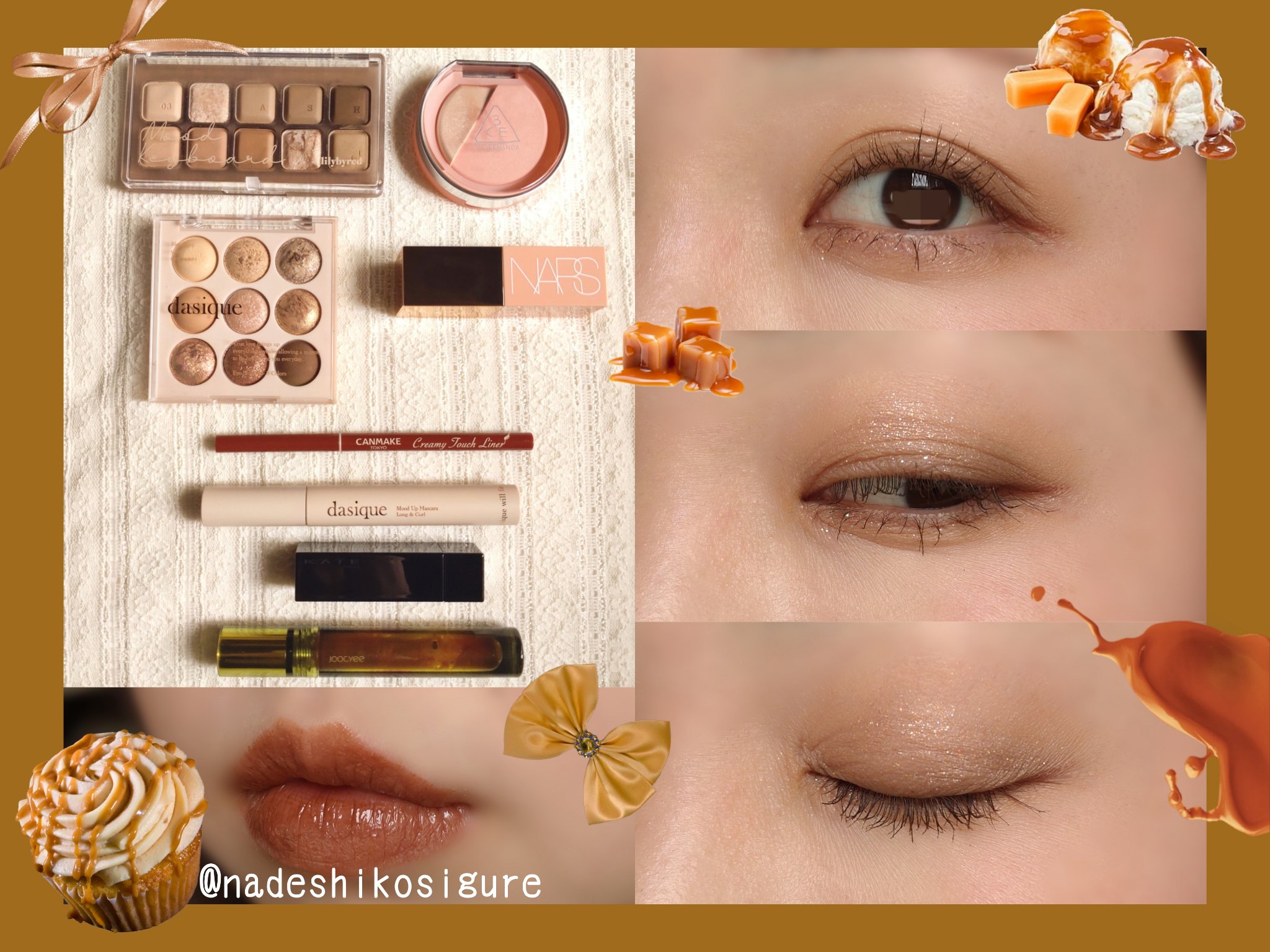 イエベ秋が大得意な紅茶カラーメイクをしてみました☺️ 参考になると嬉しいです ケイト カラーコントロールアイベースEX-2なじませレモンを使って黄みの発色を良くします。 SUQQUシグニチャー カラー アイズ10彩葉集 -IROHAATSUME でアイシャドウを塗ります。