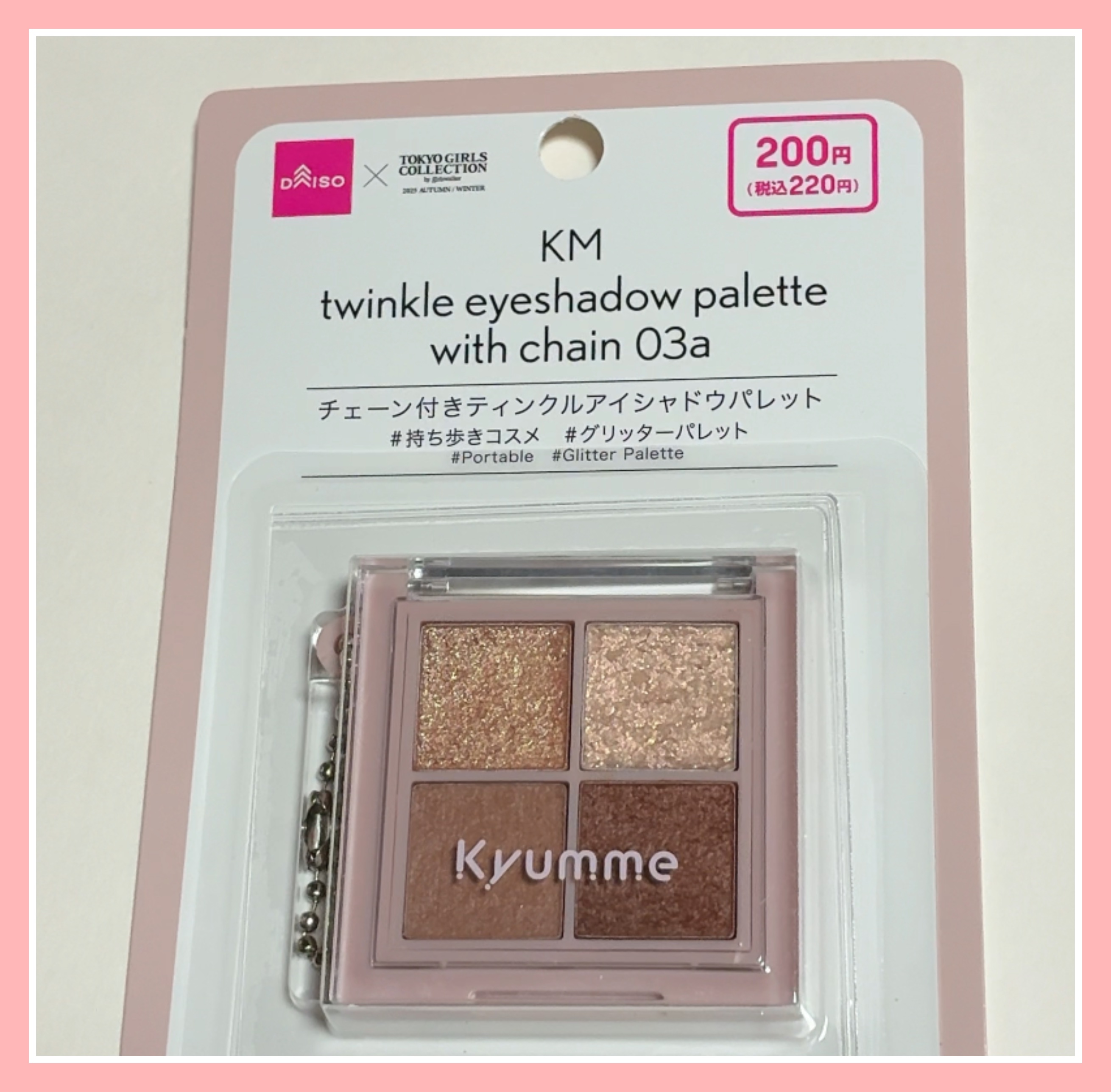 Kyummeの新作がキーチェーンコスメ💗❤︎︎︎︎❤︎KyummeKMチェーン付きティンクルアイシャドウパレット❤︎︎︎︎❤︎DAISOのKyummeから新作キーチェーンアイシャドウパレットコスメ220円で買えちゃうトレンド💗発色はまあまあ(...