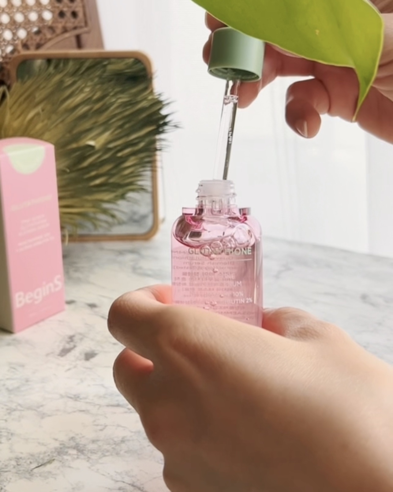 - 1)100時間低温抽出の済州産ピンクグアバ*1使用 みかんの4倍*2、りんごの3倍*2以上のビタミン*3を含む 済州産のピンクグアバを収穫+選別! 2)グルタチオンブレミッシュショット*4™ 純度99%*5のリポソームグルタチオン*6とナイアシンアミド*6などを組み合わせ、 肌をすこやかに保ち、つややかで明るい印象へと導くBegins独自のケア成分コンプレックス *1 グアバ果実エキス(整肌成分) *2 原料的な特性に限る *3 グアバ1個あたりのビタミンC含有量基準 *4ナイアシンアミド、α-アルブチン、グルタチオン、グアバ果実エキス、ヒポファラムノイデス水(すべて保湿成分) *5 純度の数値は配合成分に関する参考地であり、製品の効果を保証するものではありません。 *6整肌成分