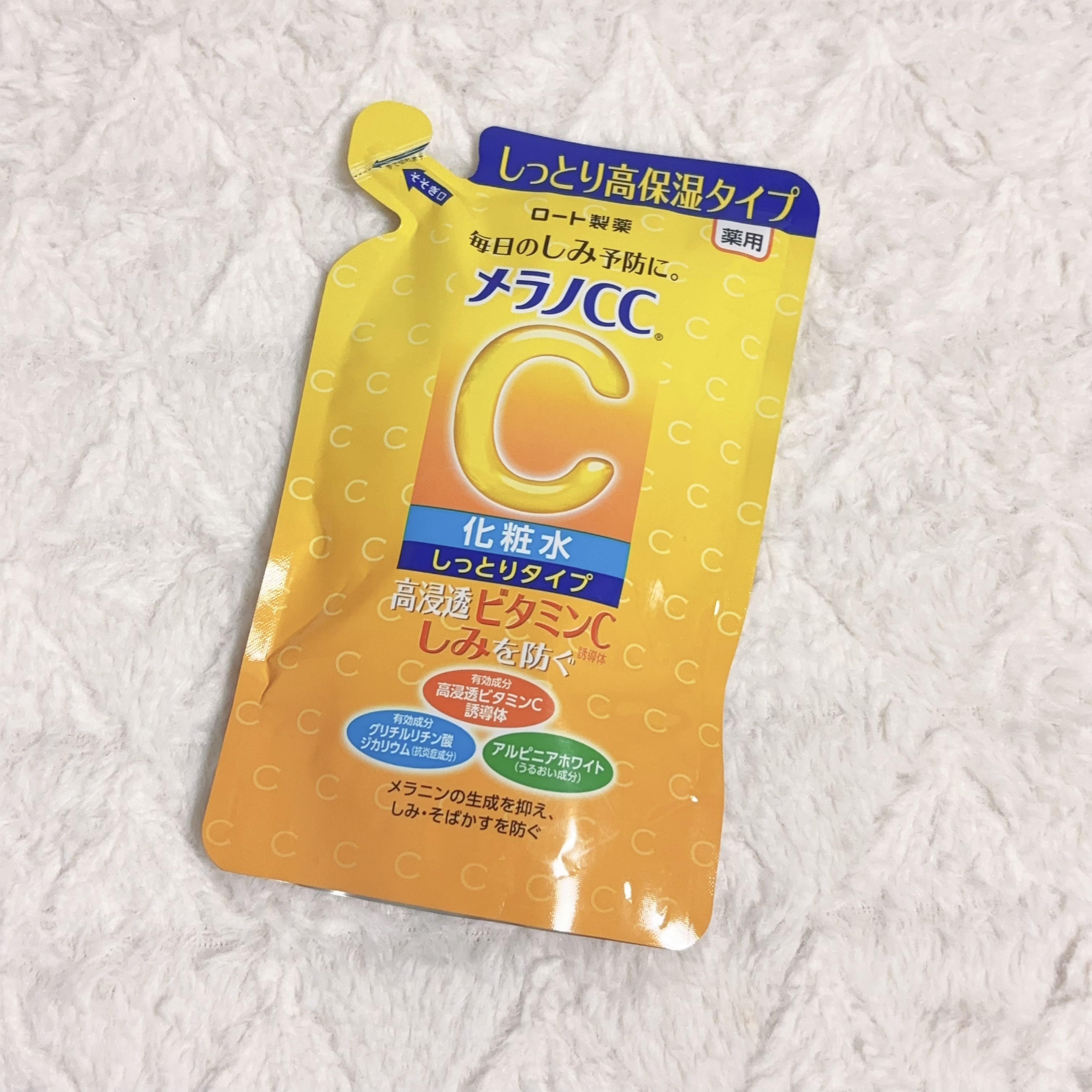 - 「メラノCC 薬用しみ対策 美白化粧水 しっとりタイプ」は、顔全体にうるおいを与えながら、しみ対策できる薬用美白化粧水。 美白有効成分の高浸透ビタミンC誘導体*1が角質層のすみずみまで浸透し、メラニンの生成を抑え、しみ・そばかすを防ぎ、透明感のある肌へと導きます。 また、抗炎症成分*2と3種のうるおい成分*3を配合。ニキビ痕が気になる肌にもうるおいを与え、肌を整えます。 さわやかな柑橘系の香りです。 *1:3-O-エチルアスコルビン酸 *2:グリチルリチン酸ジカリウム *3:アルピニアホワイト、レモンエキス、グレープフルーツエキス