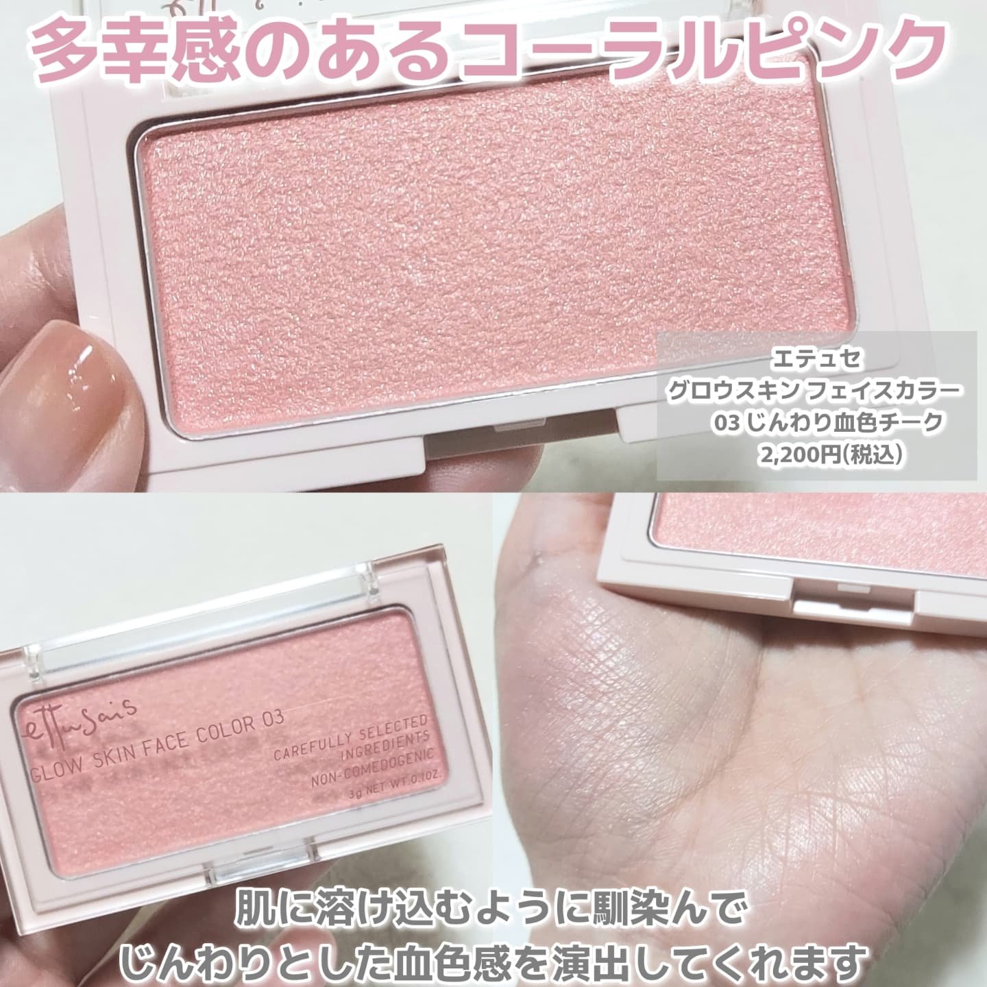 | チークランキング第3位 | ちゃんと発色してくれるのに やりすぎ感のないほわっと自然な血色で、 繊細パールがツヤんと煌めく🍑💫 | 詳細を見る | |