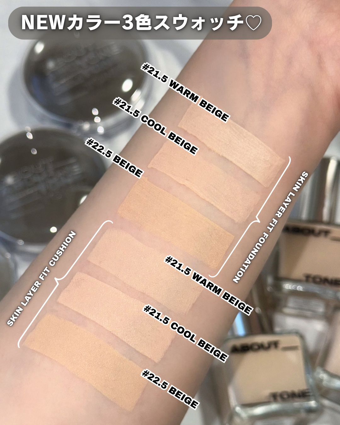 #PRABOUTTONEスキンレイヤーフィットファンデーションスキンレイヤーフィットクッション肌トーンに合わせて選べる8つのカラーバリエーション🤍今回いただいたのは新色✨✔21.5WARMBEIGE自然なウォームベージュベース✔21.5C...