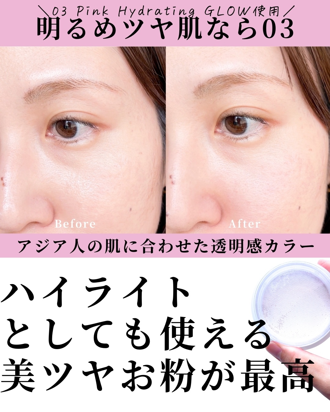 - <01 Hydrating GLOW> ホウケイ酸(Ca/Al)、シリカ、グリセリン、窒化ホウ素、ジメチコン、ナイアシンアミド、ジラウラミドグルタミドリシンNa、ワイルドタイムエキス、アセチルヒアルロン酸Na、塩化Mg、ジステアリルジモニウムクロリド、酸化亜鉛、イソプロパノール、水、BG、ステアリン酸、水酸化Al、酸化スズ、フェノキシエタノール、クロルフェネシン、合成金雲母、マイカ、酸化チタン、酸化鉄 <02 Smoothing MATTE> シリカ、グリセリン、ジメチコン、ナイアシンアミド、ジラウラミドグルタミドリシンNa、ワイルドタイムエキス、アセチルヒアルロン酸Na、塩化Mg、ジステアリルジモニウムクロリド、酸化亜鉛、イソプロパノール、水、BG、ステアリン酸、水酸化Al、酸化スズ、フェノキシエタノール、クロルフェネシン、合成金雲母、マイカ、酸化鉄、酸化チタン <03 Pink Hydrating GLOW> ホウケイ酸(Ca/Al)、シリカ、グリセリン、窒化ホウ素、ジメチコン、ナイアシンアミド、ミリスチン酸亜鉛、ワイルドタイムエキス、アセチルヒアルロン酸Na、ジステアリルジモニウムクロリド、酸化亜鉛、イソプロパノール、水、BG、酸化スズ、ステアリン酸、水酸化Al、フェノキシエタノール、クロルフェネシン、合成金雲母、マイカ、酸化チタン、グンジョウ、赤226