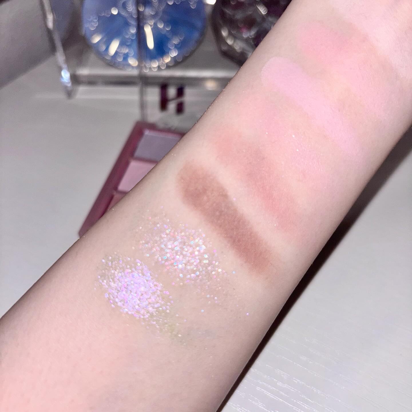 毎年年明けに発売される新宿伊勢丹限定カラー🥺🩷🎀 meecoでのみオンライン購入ができるのですが昨年はサーバーダウンで買えずとっても悔しかったので今年は本気で挑みました🥹💦 全てパールを含むカラーで見た目ほどくすみもなく、とにかく中央の紫がかわいい...😭😭 明度が高くてあまりに好みのパレットすぎました 光に当たった時の華やかかつ上品な輝き方にDiorらしさを感じつつ、デパコスにしか出せない魅力だなと💭