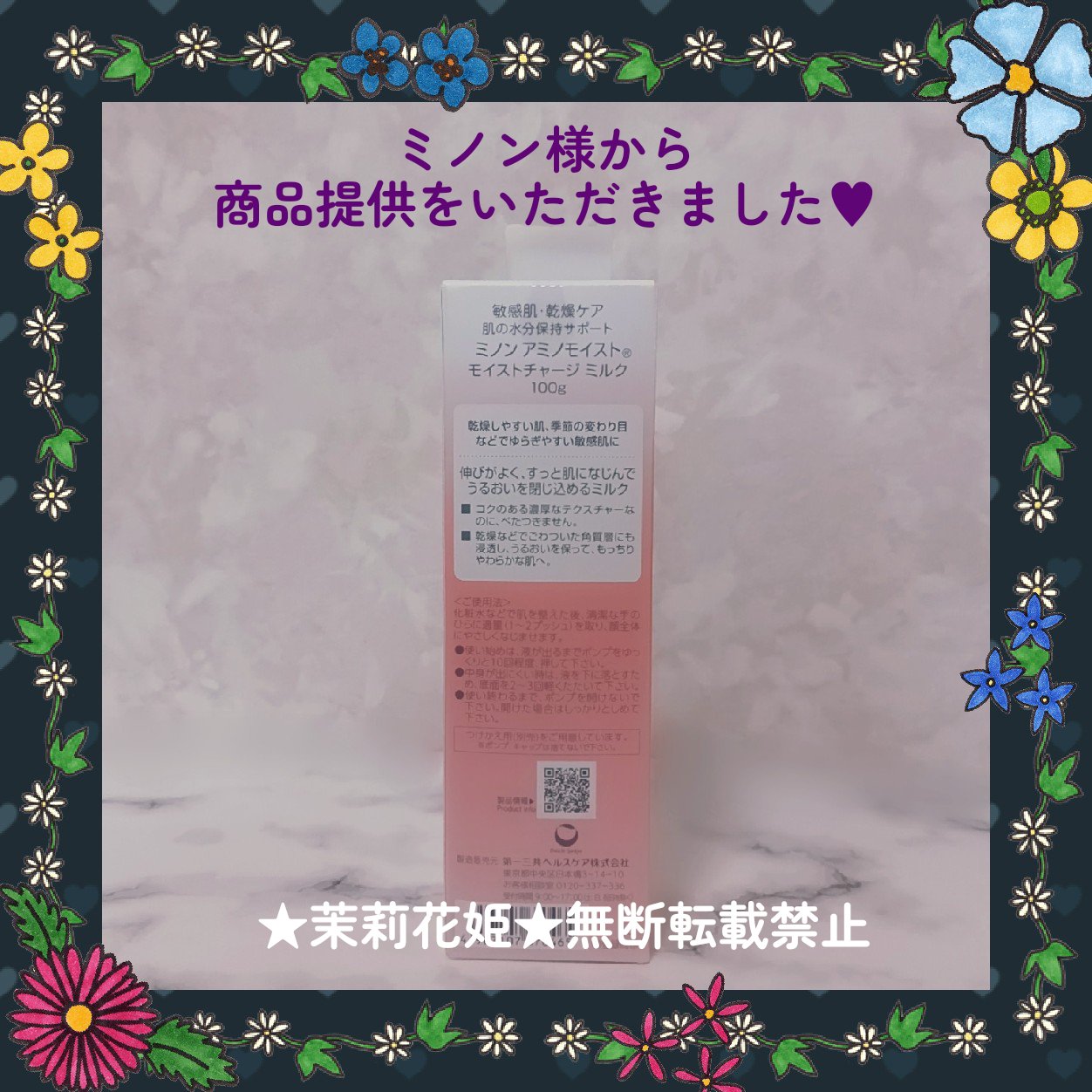ミノンから製品の提供をいただきました。第一三共ヘルスケア株式会社ミノンアミノモイストモイストチャージミルク製品名:ミノンアミノモイストモイストチャージミルク8月にリニューアルした「ミノンアミノモイスト」の敏感肌・乾燥肌ライン!やさしい想いはそ...
