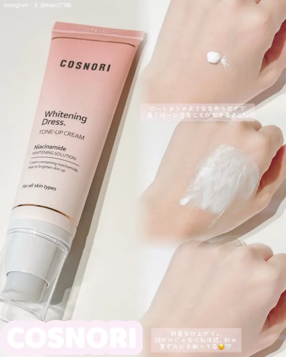#PRCOSNORI(@cosnori_jp)様よりいただきました!WHドレストーンアップクリーム少量でよく伸び、乾くとベタつかずにしっかり肌に密着してくれる。トーンアップ具合はご覧の通り!私はメイクした時の首と顔の明るさ差を抑えるのに使用し...