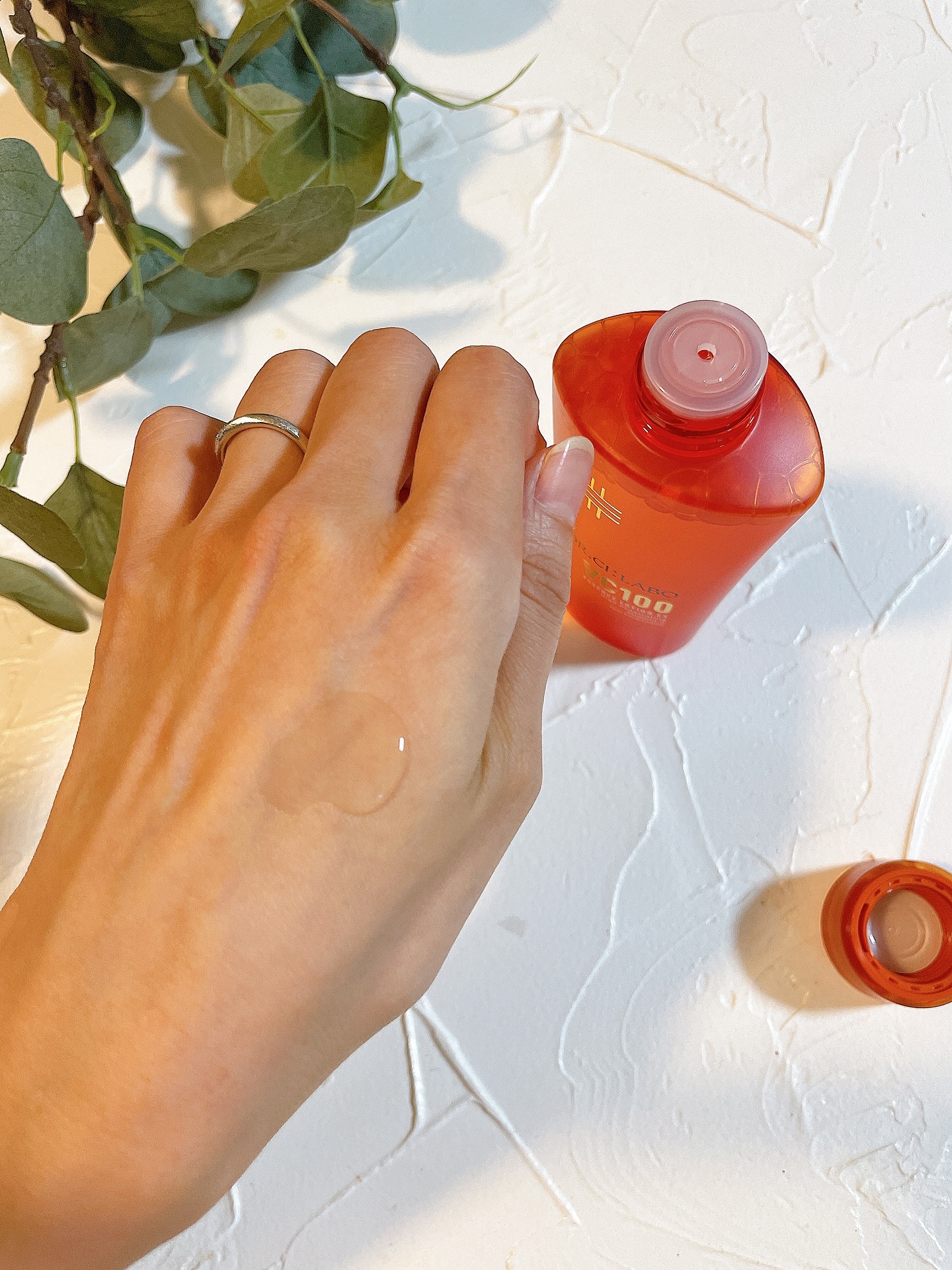 微細なナノバブルを発生させることのできる容器で、使用前にシャカシャカ振って使うよ♩ シャバシャバでさらっとしたテクスチャー。肌馴染みがよく、心地よい使い心地♩ 香りはオレンジ油の甘くみずみずしい香りで、爽やかながら元気が出そうな感じだったよ🍊