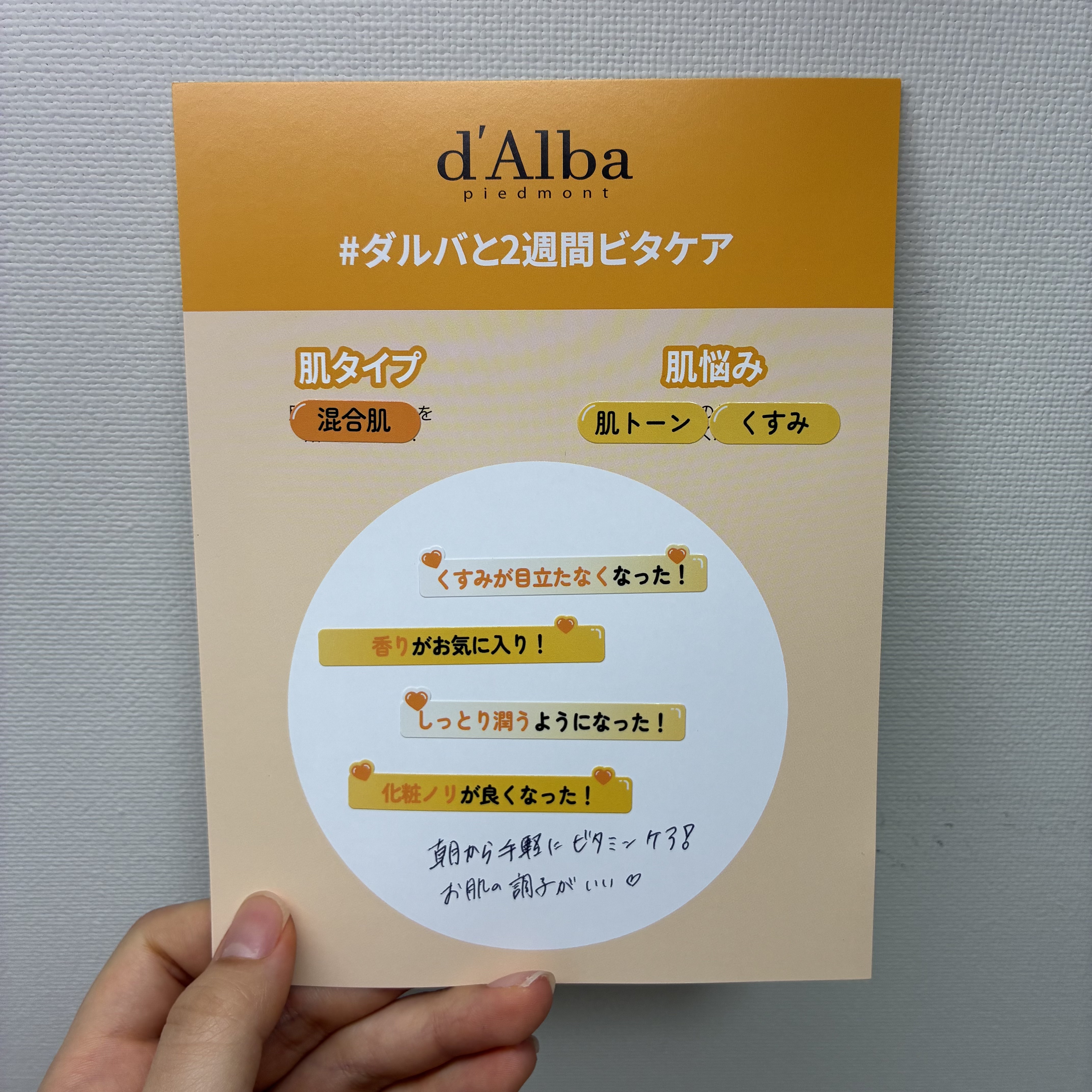 ✧PR✧d'Alba様(@dalba_japan)の【#ダルバと2週間ビタケア】モニターに当選しました🎉💛ビタトーニングセラムトナー・とろみがあるのにスッとなじむ・ビタミンC×グルタチオンで透明感サポート・爽やかな香り◎💛ビタトーニングカプセ...