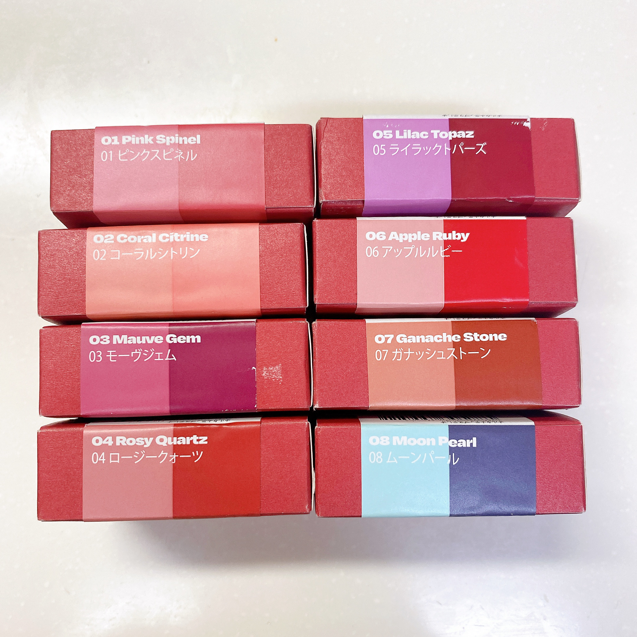 - <01 ピンクスピネル> ベースカラー ヒマシ油、トリ(カプリル酸/カプリン酸)グリセリル、ダイマージリノール酸(フィトステリル/イソステアリル/セチル/ステアリル/ベヘニル)、ダイマージリノール酸水添ヒマシ油、リンゴ酸ジイソステアリル、ポリブテン、トリイソステアリン酸ポリグリセリル-2、マイクロクリスタリンワックス、パラフィン、酸化チタン、ポリエチレン、(セバシン酸/イソパルミチン酸)ジグリセリル、ポリヒドロキシステアリン酸、ビニルジメチコン、ステアラルコニウムヘクトライト、酸化鉄、レシチン、パルミチン酸エチルヘキシル、ミリスチン酸イソプロピル、イソステアリン酸、炭酸プロピレン、ポリリシノレイン酸ポリグリセリル-3、香料、赤202、ジイソステアリン酸ポリグリセリル-2、カプリリルグリコール、カプリル酸グリセリル、赤104(1)、水、ルビー末、サファイア末、トコフェロール、ポリメチルシルセスキオキサン、BG、1,2-ヘキサンジオール、ハチミツエキス、ヘキサカルボキシメチルジペプチド-12-7Na、加水分解コンキオリンタンパク、ダイヤモンド末、セラミドNP、リン脂質、フィトスフィンゴシン、フィトステロールズ ポイントカラー トリメチルペンタフェニルトリシロキサン、(VP/ヘキサデセン)コポリマー、ジフェニルジメチコン、ポリブテン、水添ココグリセリル、(VP/エイコセン)コポリマー、合成ワックス、水添ポリ(C6-14オレフィン)、マイクロクリスタリンワックス、リンゴ酸ジイソステアリル、水添(スチレン/メチルスチレン/インデン)コポリマー、酸化チタン、イソステアリン酸デキストリン、シリル化シリカ、トリ酢酸テトラステアリン酸スクロース、エチルヘキサン酸セチル、オクチルドデカノール、トリイソステアリン酸ポリグリセリル-2、ポリエチレン、ビニルジメチコン、赤201、黄4、ジステアルジモニウムヘクトライト、香料、赤202、ジイソステアリン酸ポリグリセリル-2、カプリリルグリコール、カプリル酸グリセリル、酸化鉄、赤104(1)、青1、炭酸プロピレン、水、ルビー末、サファイア末、ポリメチルシルセスキオキサン、BG、1,2-ヘキサンジオール、ハチミツエキス、ヘキサカルボキシメチルジペプチド-12-7Na、加水分解コンキオリンタンパク、ダイヤモンド末、セラミドNP、リン脂質、フィトスフィンゴシン、フィトステロールズ <02 コーラルシトリン> ベースカラー ヒマシ油、トリ(カプリル酸/カプリン酸)グリセリル、ダイマージリノール酸(フィトステリル/イソステアリル/セチル/ステアリル/ベヘニル)、ダイマージリノール酸水添ヒマシ油、リンゴ酸ジイソステアリル、ポリブテン、トリイソステアリン酸ポリグリセリル-2、マイクロクリスタリンワックス、パラフィン、酸化チタン、ポリエチレン、(セバシン酸/イソパルミチン酸)ジグリセリル、ポリヒドロキシステアリン酸、ビニルジメチコン、ステアラルコニウムヘクトライト、レシチン、酸化鉄、パルミチン酸エチルヘキシル、ミリスチン酸イソプロピル、イソステアリン酸、炭酸プロピレン、ポリリシノレイン酸ポリグリセリル-3、香料、赤201、カプリリルグリコール、カプリル酸グリセリル、赤202、ジイソステアリン酸ポリグリセリル-2、青1、水、ルビー末、サファイア末、トコフェロール、ポリメチルシルセスキオキサン、BG、1,2-ヘキサンジオール、ハチミツエキス、ヘキサカルボキシメチルジペプチド-12-7Na、加水分解コンキオリンタンパク、ダイヤモンド末、セラミドNP、リン脂質、フィトスフィンゴシン、フィトステロールズ ポイントカラー トリメチルペンタフェニルトリシロキサン、(VP/ヘキサデセン)コポリマー、ジフェニルジメチコン、ポリブテン、水添ココグリセリル、(VP/エイコセン)コポリマー、合成ワックス、水添ポリ(C6-14オレフィン)、マイクロクリスタリンワックス、水添(スチレン/メチルスチレン/インデン)コポリマー、リンゴ酸ジイソステアリル、酸化チタン、イソステアリン酸デキストリン、シリル化シリカ、トリ酢酸テトラステアリン酸スクロース、オクチルドデカノール、ポリエチレン、エチルヘキサン酸セチル、トリイソステアリン酸ポリグリセリル-2、ビニルジメチコン、酸化鉄、赤201、ジステアルジモニウムヘクトライト、香料、赤202、ジイソステアリン酸ポリグリセリル-2、カプリリルグリコール、カプリル酸グリセリル、炭酸プロピレン、水、ルビー末、サファイア末、ポリメチルシルセスキオキサン、BG、1,2-ヘキサンジオール、ハチミツエキス、ヘキサカルボキシメチルジペプチド-12-7Na、加水分解コンキオリンタンパク、ダイヤモンド末、セラミドNP、リン脂質、フィトスフィンゴシン、フィトステロールズ <03 モーヴジェム> ベースカラー ヒマシ油、トリ(カプリル酸/カプリン酸)グリセリル、ダイマージリノール酸(フィトステリル/イソステアリル/セチル/ステアリル/ベヘニル)、ダイマージリノール酸水添ヒマシ油、リンゴ酸ジイソステアリル、ポリブテン、トリイ