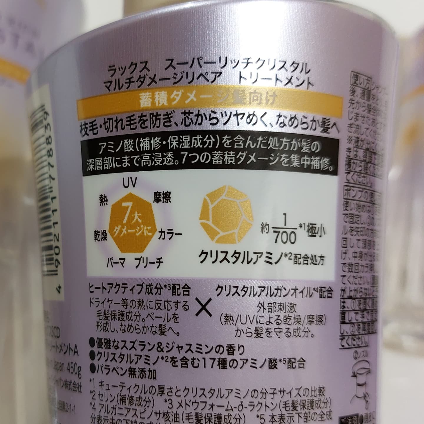 瞬間!クリスタルツヤ髪へ 蓄積ダメージ髪向けタイプのシリーズ🧴 7大ダメージである熱、摩擦、UV、カラー、ブリーチ、乾燥、パーマによる髪ダメージを総合的に補修 クリスタルをイメージした高級感のある素敵なデザインボトル🧴 ドライヤー等の熱に反応して毛髪を保護してくれる成分が入っているので、熱ダメージが気になる髪にも👌🏻