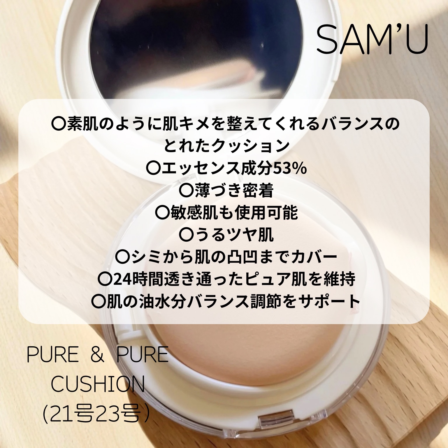 SAM'U˚✦スキンケアのプロであるサミュのノウハウを詰め込んだクッション誕生✨✔︎Pure&PureCushion#ピュアアンドピュアクッションSPF50+PA+++/¥2,860[Qoo10公式価格]高光彩オイル×プリズムパウダーのシナジ...