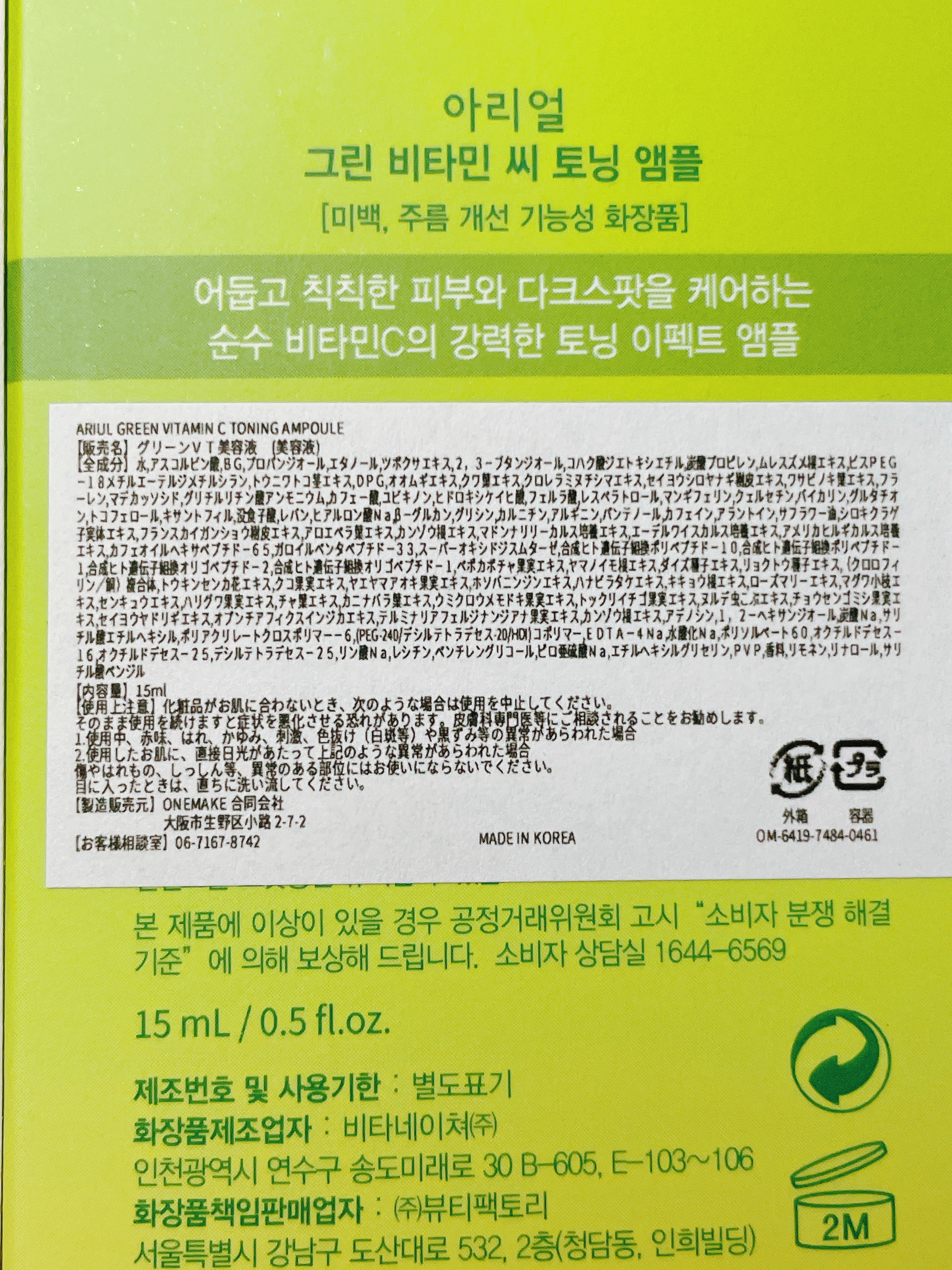 商品詳細情報Ariul アリウル グリーンビタミンC トーニングセラム(アンプル)