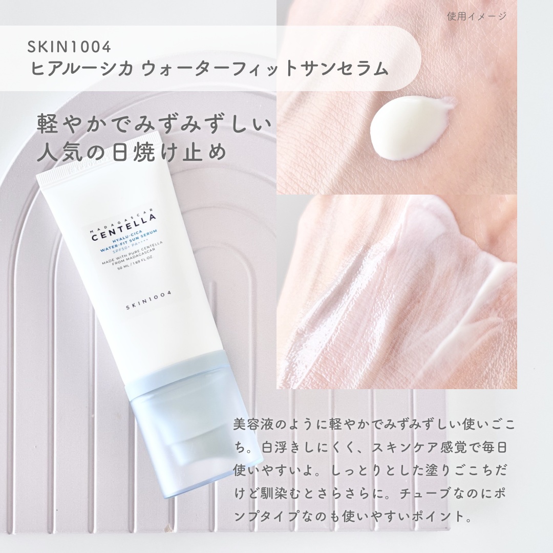 ☀️毎日UVケアが楽しみになる♪SKIN1004「ヒアルーシカ」シリーズの💧ウォーターフィットサンセラム💎シルキーフィットサンスティックどっちもほんっとうに使い心地がいい✨💧【ヒアルーシカウォーターフィットサンセラム】みずみずしくて美容液みた...