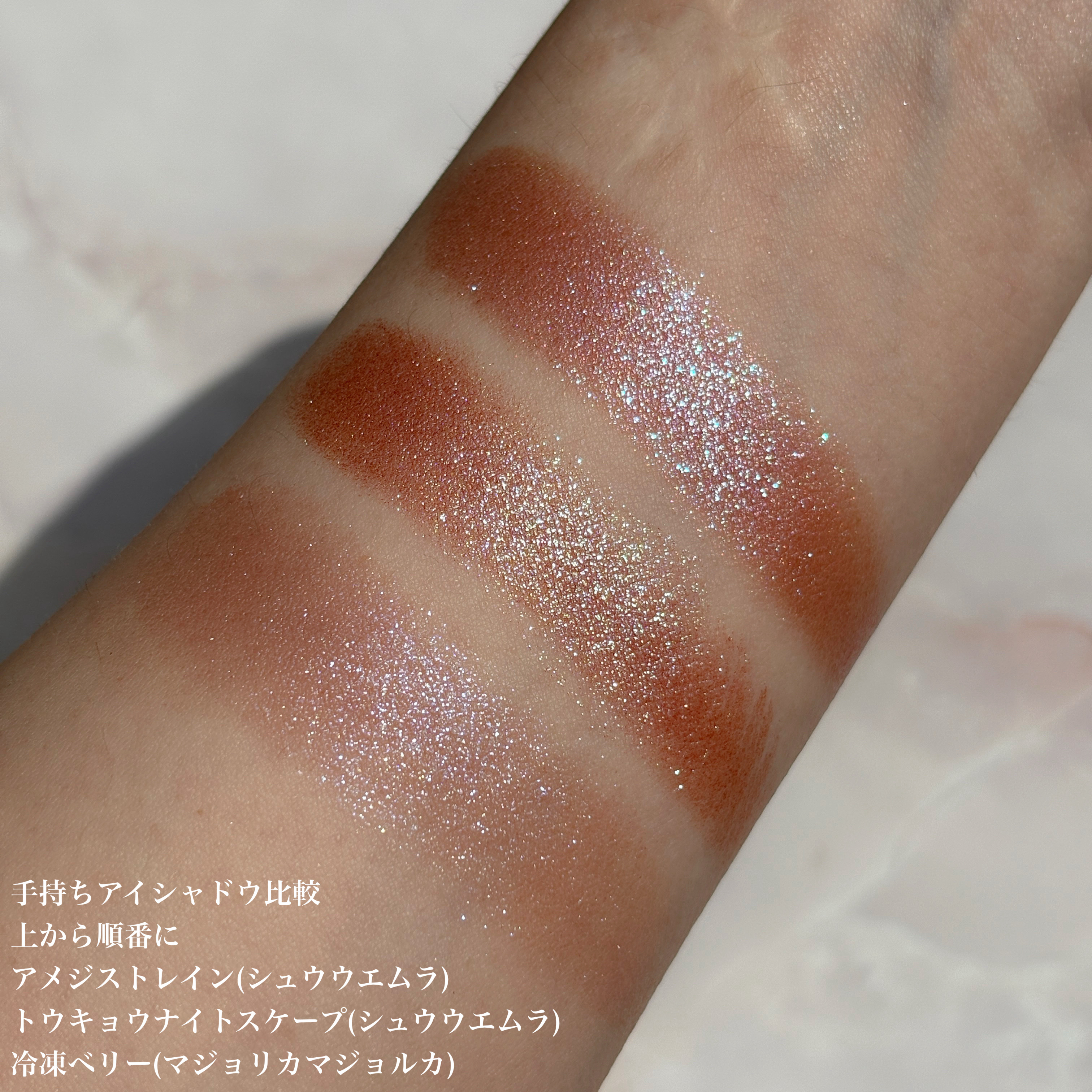 カルミンアレルギー各位。こちら、カルミンフリーでございます!!!また私の瞼にシュウウエムラを纏える日が来るとは🥹🩷shuuemura💎クラッシュドジェム💎・アメジストレイン・ヌードジャスパーカルミンアレルギーで瞼にカルミン配合アイシャドウを使...