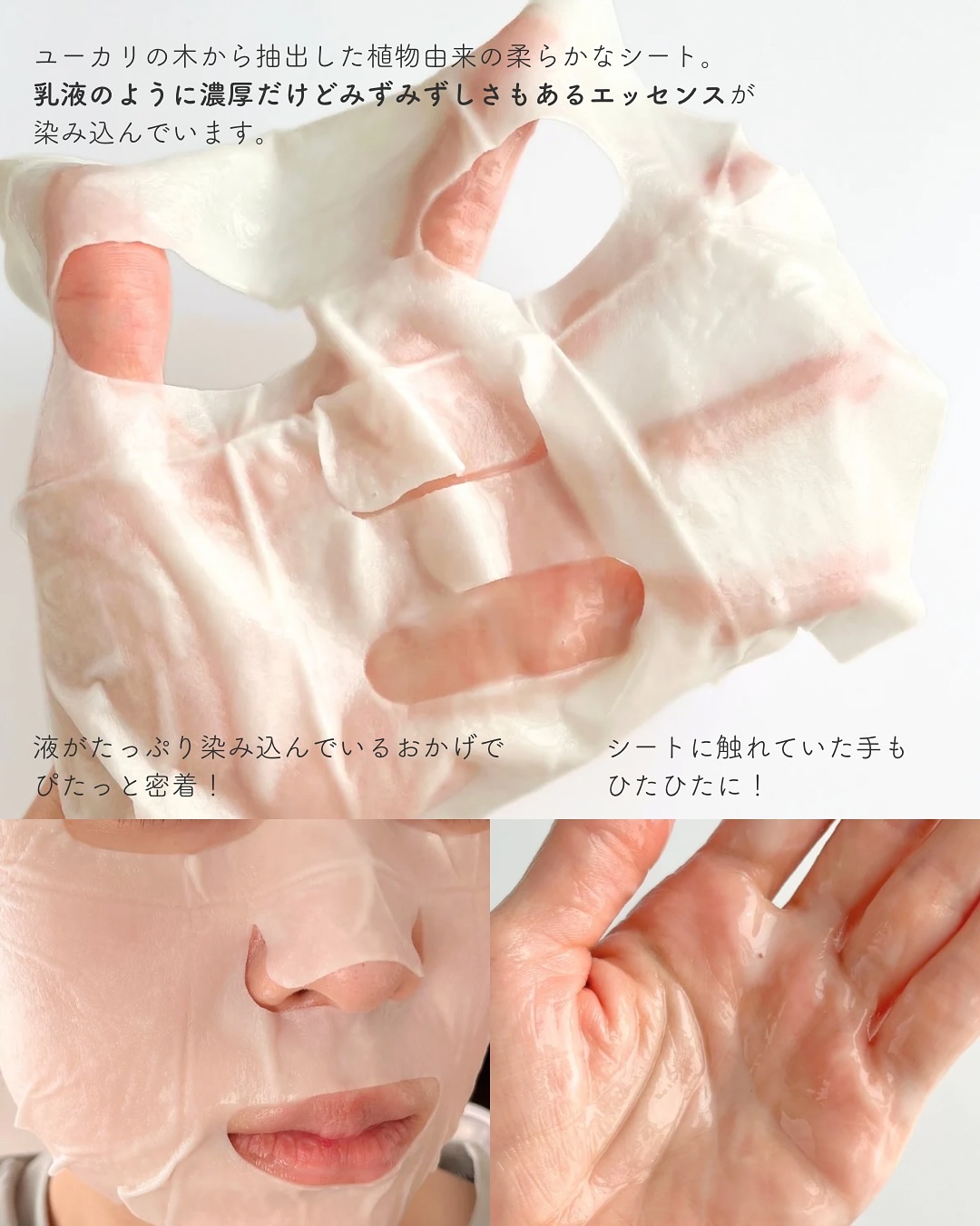 | 乳液とクリームの間のような美容液がたっぷり入った柔らかいシートマスク。外した後は肌がツヤツヤ✨ | 詳細を見る | |
