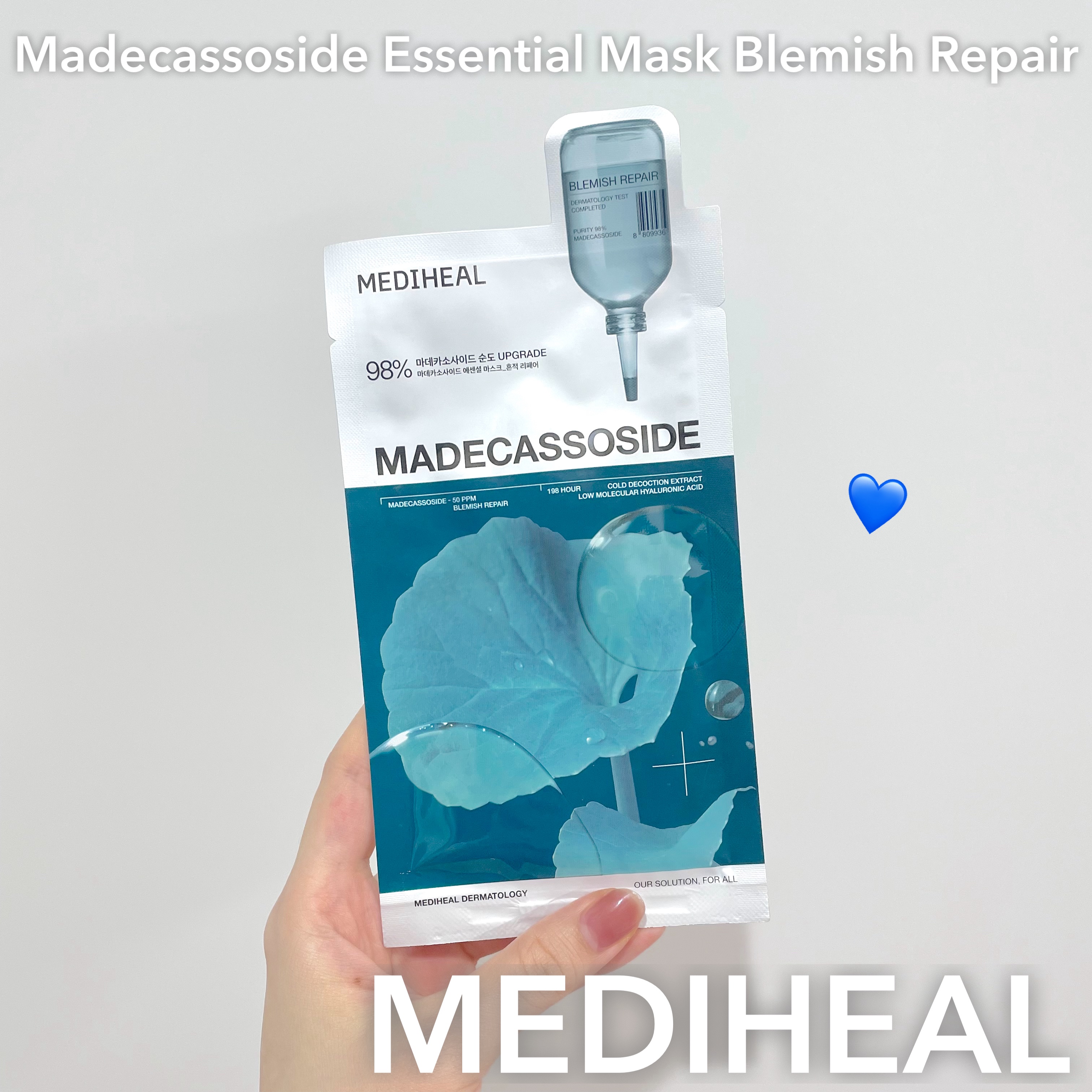 @mediheal.jp.official様よりいただきました💙マデカッソシドエッセンシャルマスクブレミッシュリペア販売数第一位のメディヒールの人気パック🩶純度98%のマデカッソシドが配合されていて、水分感たっぷりのパックになっています🚿保湿...