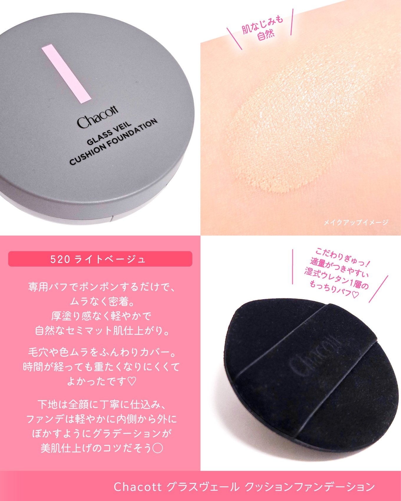 ************ChacottグラスヴェールクッションファンデーションSPF50+PA++++(ノンケミカル処方・紫外線吸収剤フリー) チャコットから9/12(金)にクッションファンデーションが全国発売🪄チャコットのベース、とっても...