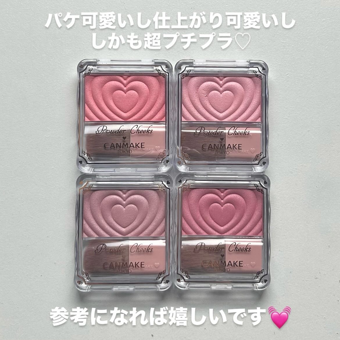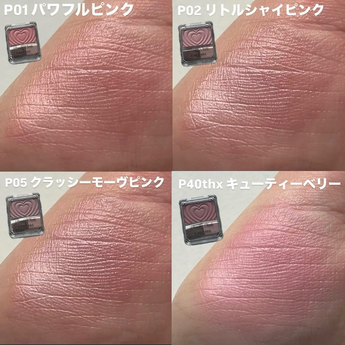 ハート可愛すぎるパウダーチークス全色スウォッチ💗❤︎︎︎︎❤︎キャンメイクパウダーチークス¥660❤︎︎︎︎❤︎ツヤが好きな方は絶対これ💗とりあえずパケが可愛い。ハート💗💗それも¥660でこれ👏凄すぎ👏P01パワフルピンク元気な印象になる王道...