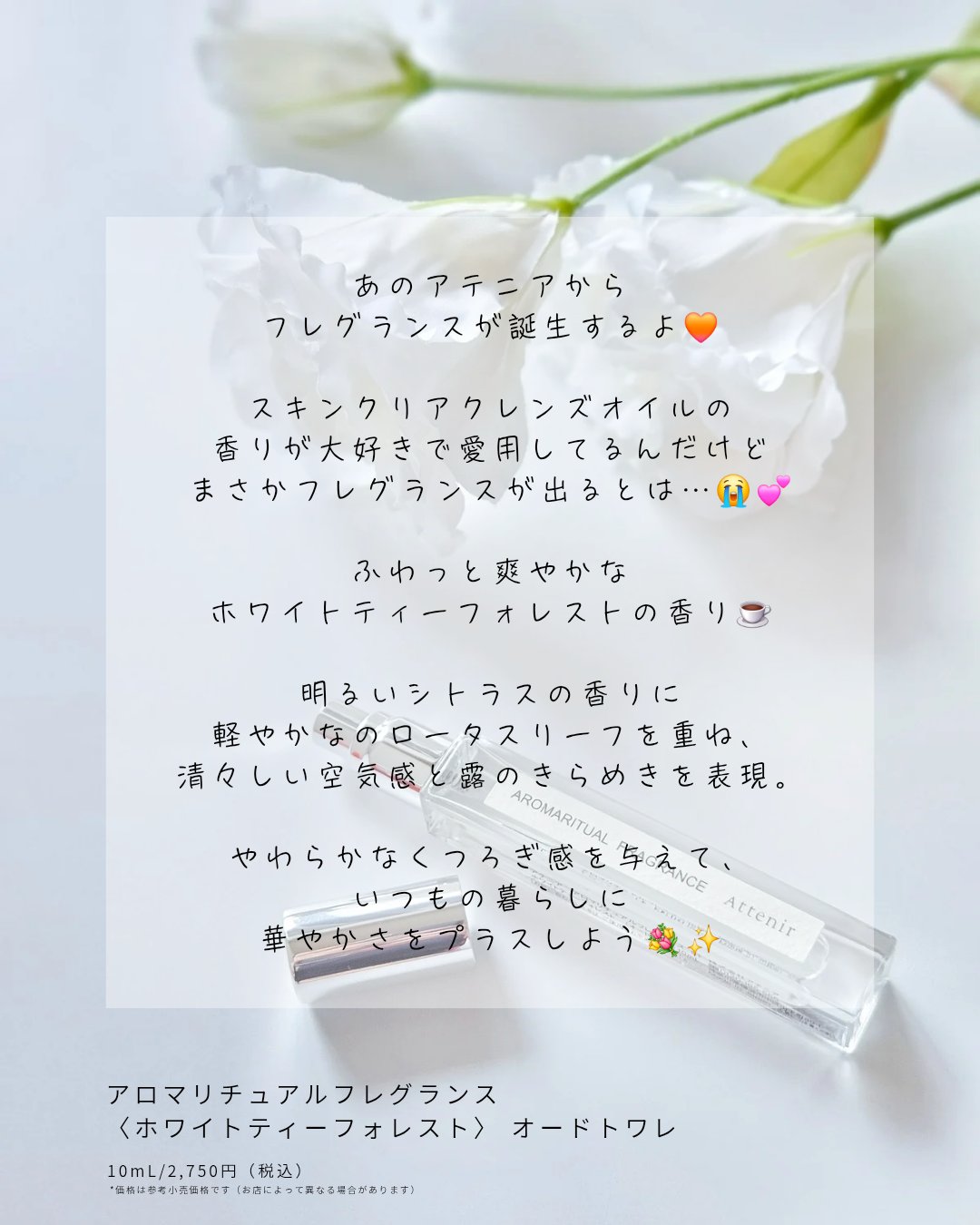 #PR#アテニア#アロマリチュアルフレグランス#フレグランス#attenirアテニアからフレグランスが新発売💐@attenir_official商品名:アロマリチュアルフレグランス〈ホワイトティーフォレスト〉オードトワレ■ホワイトティーフォレ...