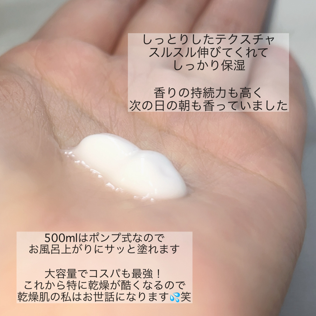| ボディケアランキング第106位 | ホント潤いが凄い。しっとりだし、しっかりバリアしてくれるから乾燥知らず…! | 詳細を見る | |