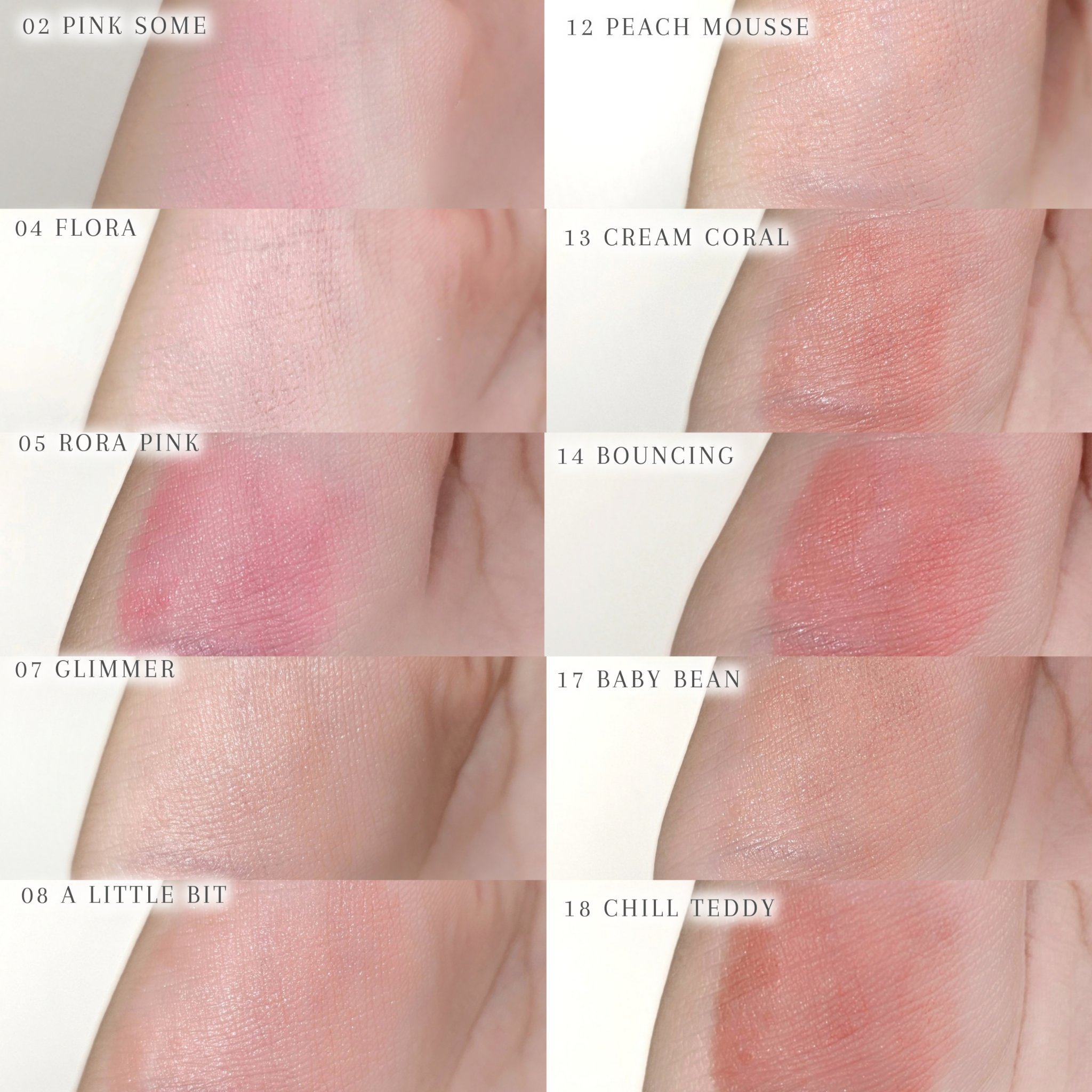- ふんわりなめらか!リップにもチークにも使えてメイク自由自在! 何度重ねてもヨレにくいクリームテクスチャ、1度塗りでも長時間キープ ベースメイクの上でもメイク浮きしにくい スティック型なので、衛生面も問題なく持ち運びにも便利! 使い方:おすすめの使い方は3種類あります。 1、スティックを軽く叩くようにタッチすると肌にやわらかく密着します。 2、パフを使って軽くトントンすると、自然に血色感あるカラーを作れます。 3、指先の体温でテクスチャをやわらかく溶かし、ジュワっと発色します。 8月上旬より、全国のロフト・プラザ・アットコスメにて先行販売 ※一部お取り扱いのない店舗がございます。商品により取扱店舗が異なります。詳細は各店舗へお問い合わせください。 ※店舗発売は10色展開<02ピンクサム、04フローラ、05ローラピンク、07グリマー、08アリトルビット、12ピーチムース、13クリームコーラル、14バウンシング、17ベイビービーン、18チルテディ> ※POPUP限定で20色展開