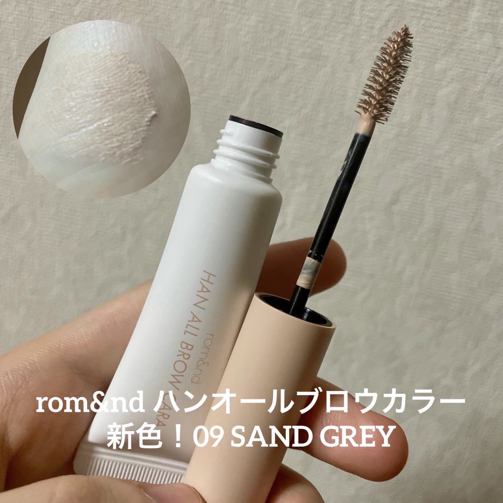 rom&ndハンオールブロウカラ09SANDGREY眉毛が濃い人も薄い眉毛になるって聞いて気になって購入しました💓いつも眉マスカラはrom&ndのこの種類を購入していてお気に入り🥰塗りやすいし、眉毛もしっかり染まるから嬉しい!密着力が高いから...