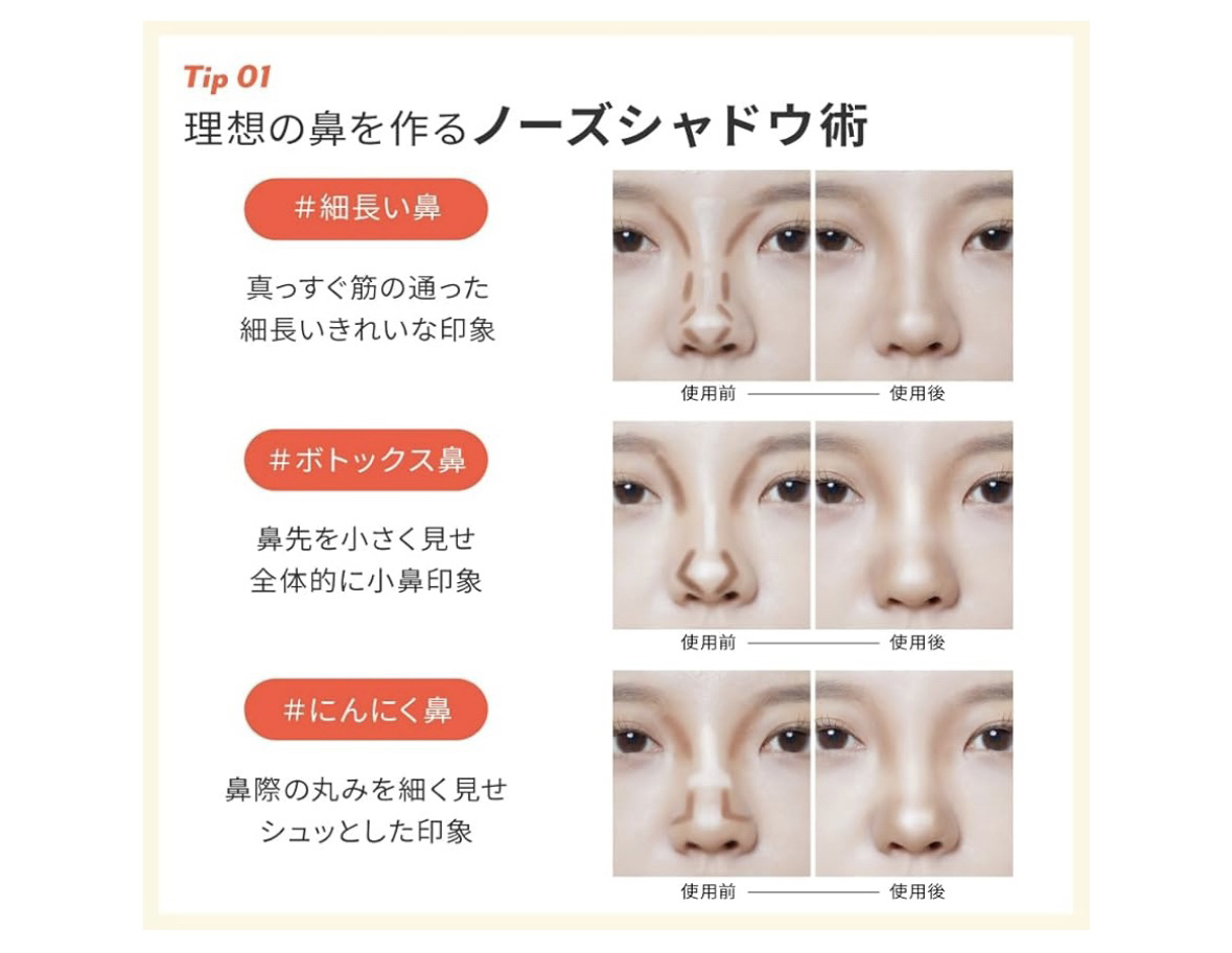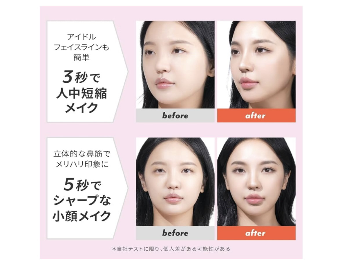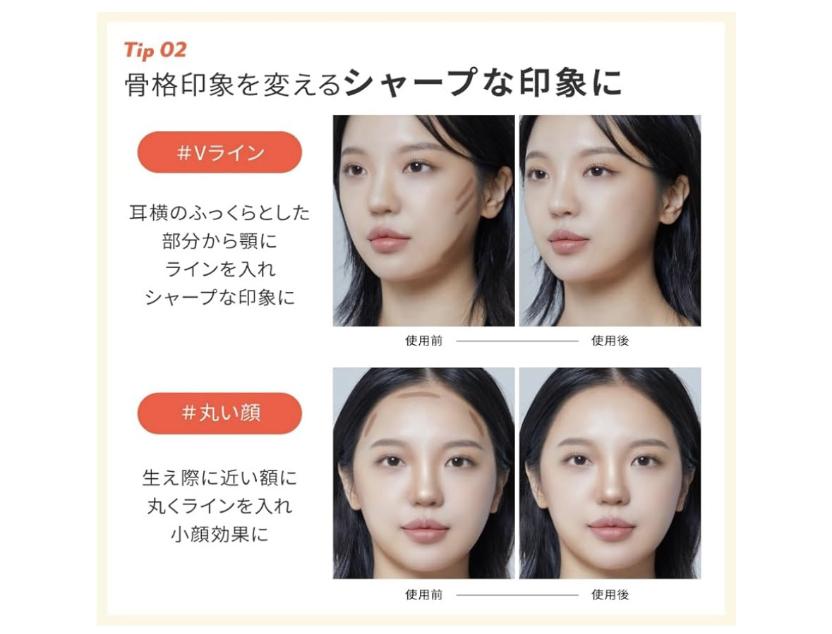 - 狭く、小さく、ピンポイントに! 絶妙1.1cm幅のスティックタイプで欲しい陰影を狙い撃ち。 肌なじみがよく暗すぎないシェーディング&光すぎないハイライトが1本に。