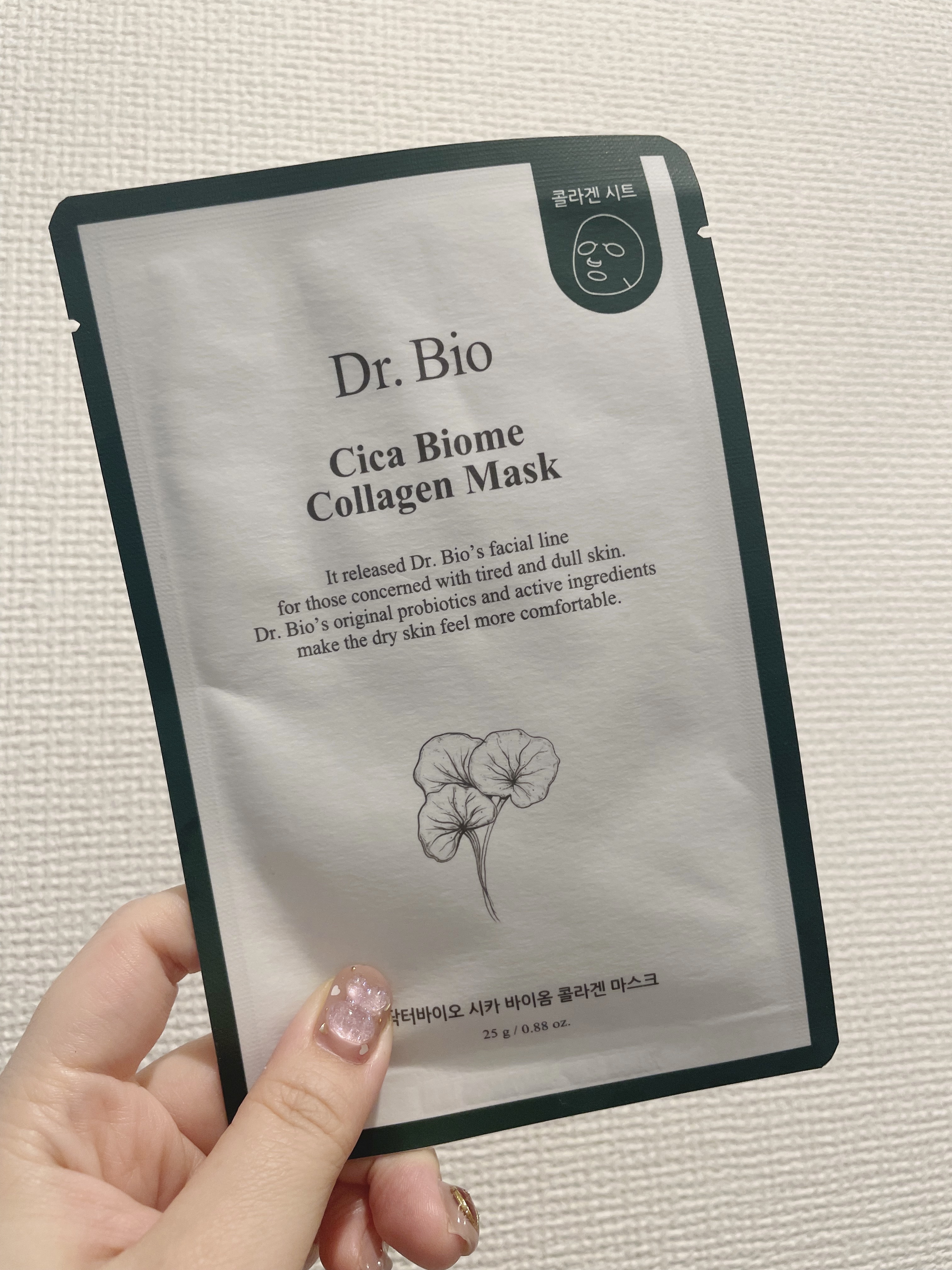 乾燥により、くすんで見える肌をパッと明るく透明感のあるお肌へと導いてくれるスペシャルパック❣️ 『CICA BIOME』で肌の水分バランスを整えてくれたり、刺激されたお肌を落ち着かせてくれます! このシートマスクはエコ100%セルロース生地『コラーゲンコーティングシート』なんだそうです❣️