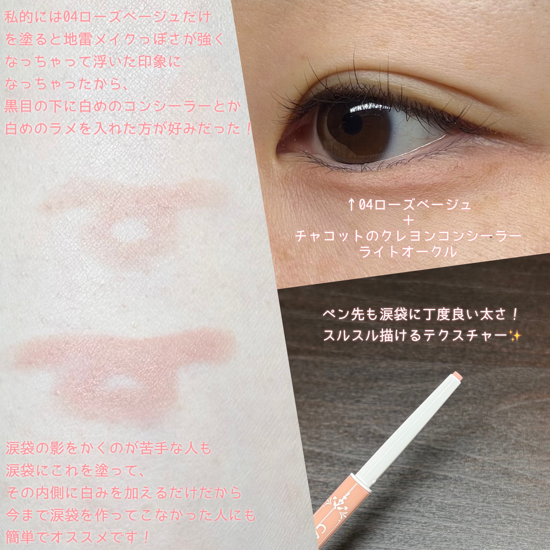 - ぷっくり自然な生まれつき風涙袋を作る3mmの細芯コンシーラー ラインを描いた後すぐはぼかしやすく、乾いた後はお肌に高密着! 水・汗・涙・皮脂・こすれに強く、描きたての仕上がりが長時間キープされます。