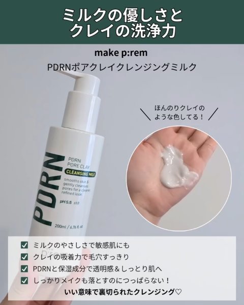 🎀ⵗコスメレビュー🧸͗͗˗ˋˏミルクのやさしさ×クレイのコク感でスッキリˎˊ˗makep:remのPDRNポアクレイクレンジングミルクを試してみたよ🐰🍼ミルクのやわらかさでスルッと肌になじんでクレイのやさしいコク感でメイクや汚れ...