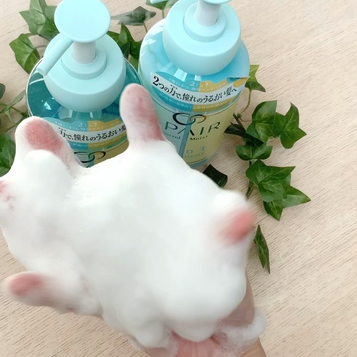 - &PAIRは「タイパ美容」に着目し、1本で2つの機能を持ち合わせたヘアケアブランドです。 コントロール モイストシリーズはうねり※1とパサつきを同時にケアし、しっとりな仕上がりに導きます。 シャンプーにはナノバブルパーツが採用されており、本体を振ることでナノバブルを発生させることができます。 ナノサイズの微細な泡で毛穴の皮脂汚れを滑らかに洗い流します。 ヘアトリートメントは導入ブースター成分*1で保湿成分の浸透をサポートし、 髪のパサつきに浸透保湿ケアができる導入ブースター機能のあるヘアトリートメント。 製品の90%以上が保湿&うねり※1ケア成分*2で構成し※2、指通り滑らかなしっとり髪へ導きます。 石油系洗浄成分不使用・パラベン不使用・動物実験不実施(製品として)・合成着色料不使用・サルフェート不使用(ラウレス硫酸Na)・鉱物油不使用 ※1 乾燥により髪のしなやかさが不足し、まとまりにくい状態 ※2 基剤を除く、水を含む *1 アルギニン、加水分解ケラチン(羊毛)、加水分解ヒアルロン酸(全て保湿) *2 γードコサラクトン(補修)