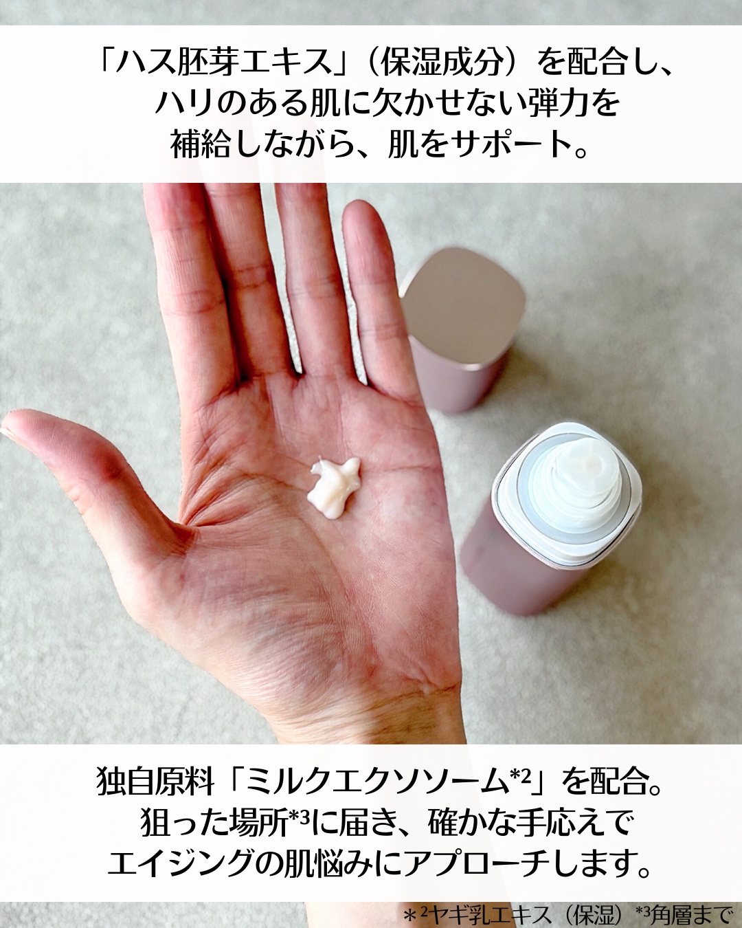 | ほんのり透ける白い液で、テクスチャはゆるめ。よく伸びます。 | 詳細を見る | |