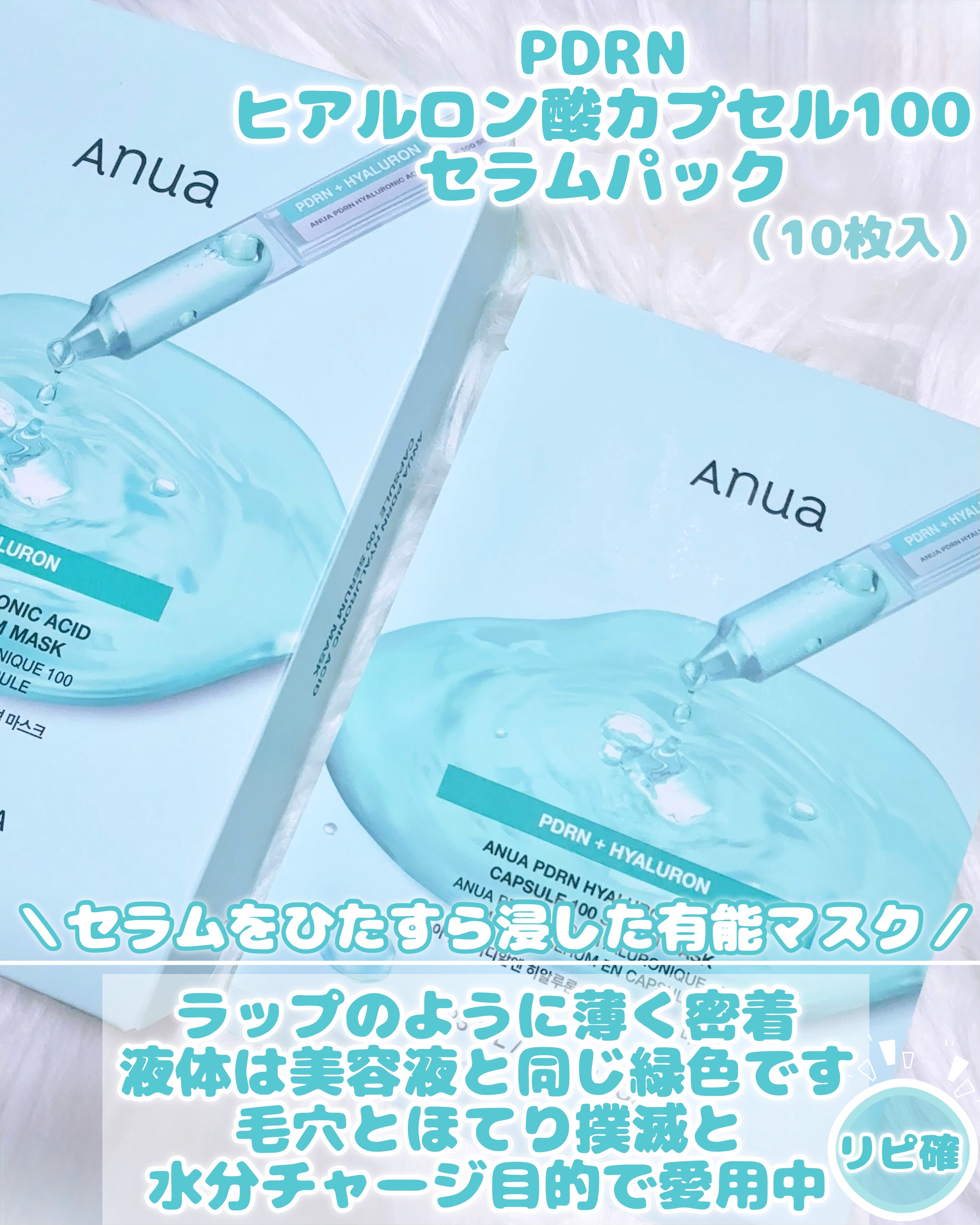 AnuaPDRNヒアルロン酸カプセル100セラムマスクパック〜今日の夜保湿で使用しました〜液がめっちゃひたひたに入ってて、袋の中にも残ってたから体に使用した〜めっちゃさっぱりなのに、ウルウルになったコレはリピありデイリーパックもあるらしいから...