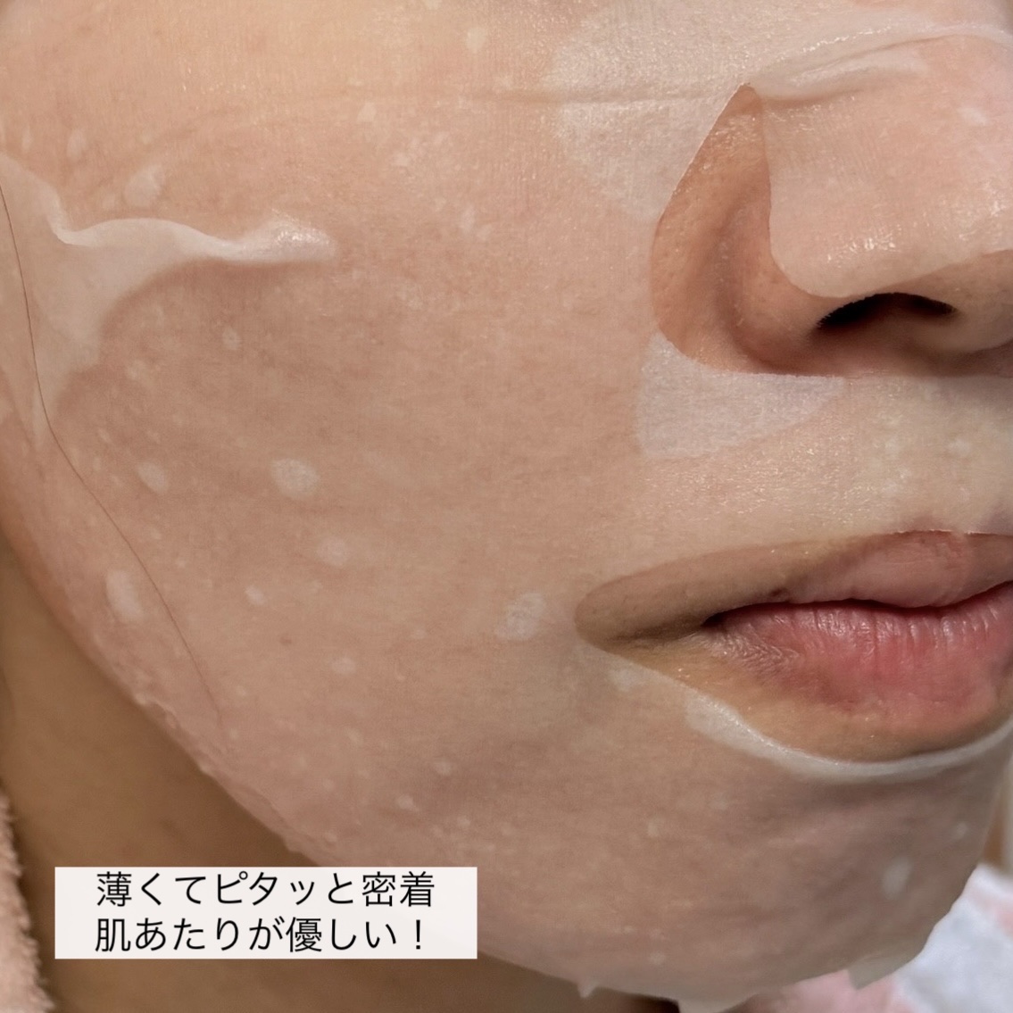 | 薄くてとても柔らかめのシートで、皺が出来ても伸ばしやすいので顔にピタッと貼り付けられます😊 ゴワゴワしないのがイイ👍✨ | 詳細を見る |