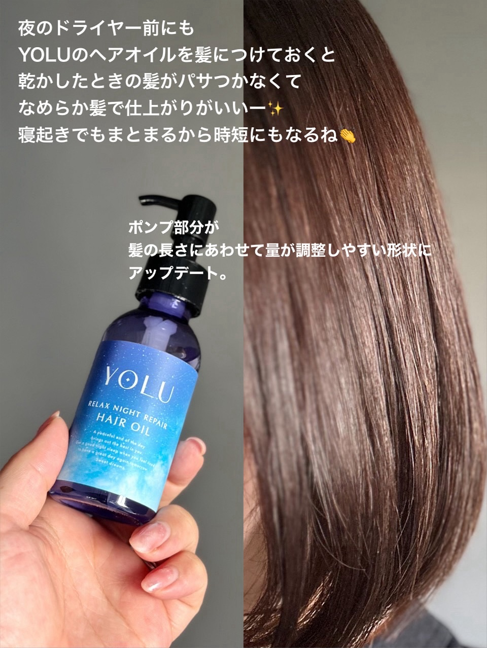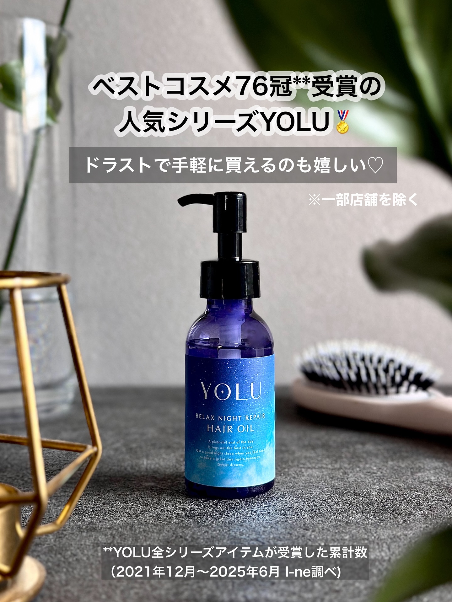 .YOLUリラックスナイトリペアヘアオイル1,540円(税込)ベストコスメ76冠*受賞のYOLUがリニューアルしたよ🌙ひと晩中、毛先までうるおいを包むナイトキャップセラム*¹を新配合!補修成分をしっかり浸透&膜で密封させて、寝ている間も髪のう...