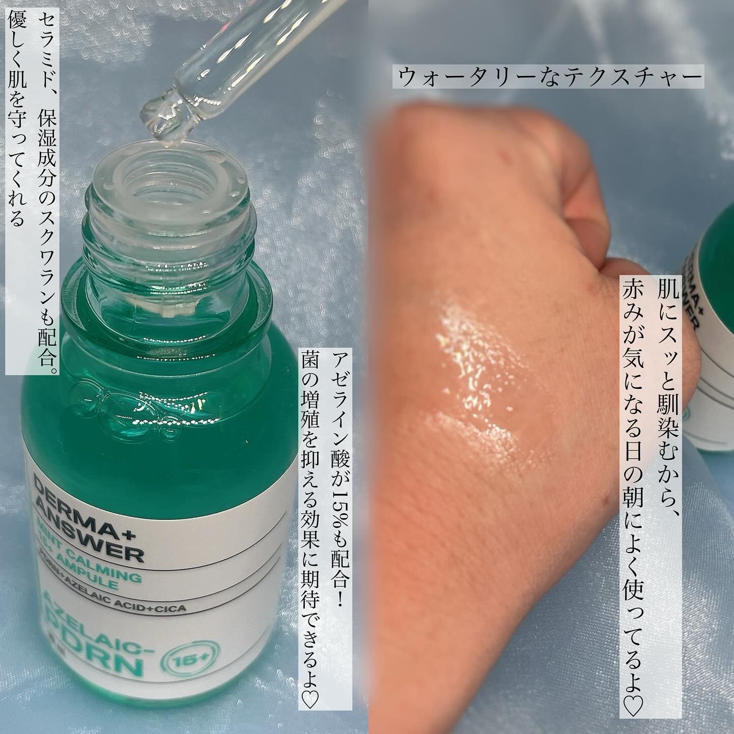#PR#CNPアゼライン酸+PDRNを高配合した美容液❤️ダーマアンサーミントカーミング15+アンプルは高純度アゼライン酸15%とシカPDRN配合でニキビや肌荒れの原因を根本から緩和して揺らがない肌へ導いてくれます✨透明なミントカラーの美容液...
