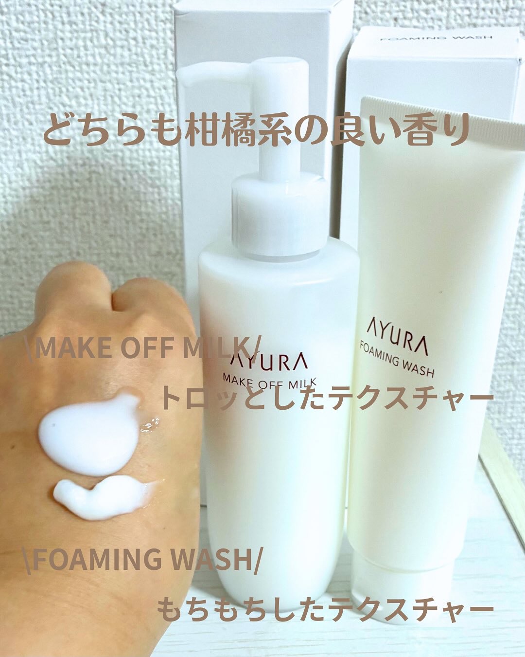 AYURAメークオフミルクαAYURAフォーミングウォッシュαメイクオフミルクαとろりとした乳液のようなテクスチャーでメイクを落としたあとはしっとりとした洗い心地💓フォーミングウォッシュαは泡立ちもよくもっちりとした泡が作れるよ😊すっきりとし...